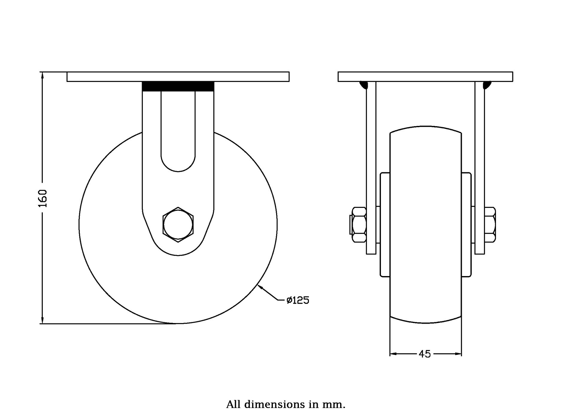 Fixed castor with strong top plate bracket made of zinc plated steel.