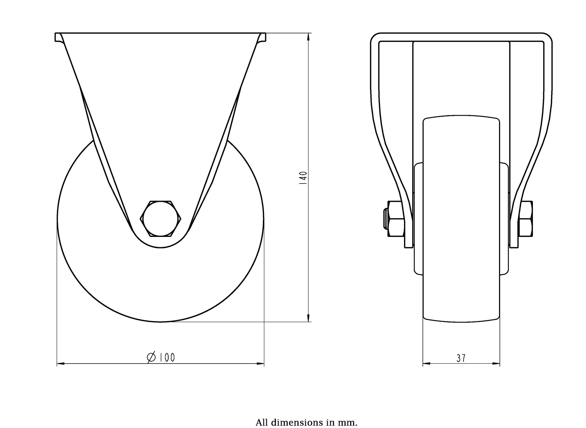 Fixed castor with strong top plate bracket made of zinc plated steel.