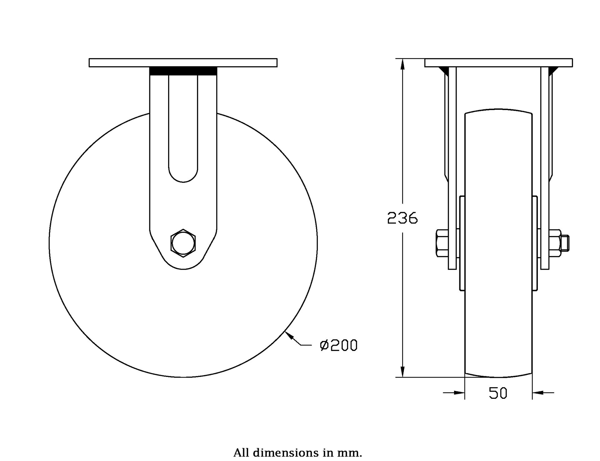 Wheel Diameter: 200mm (8" inches)
