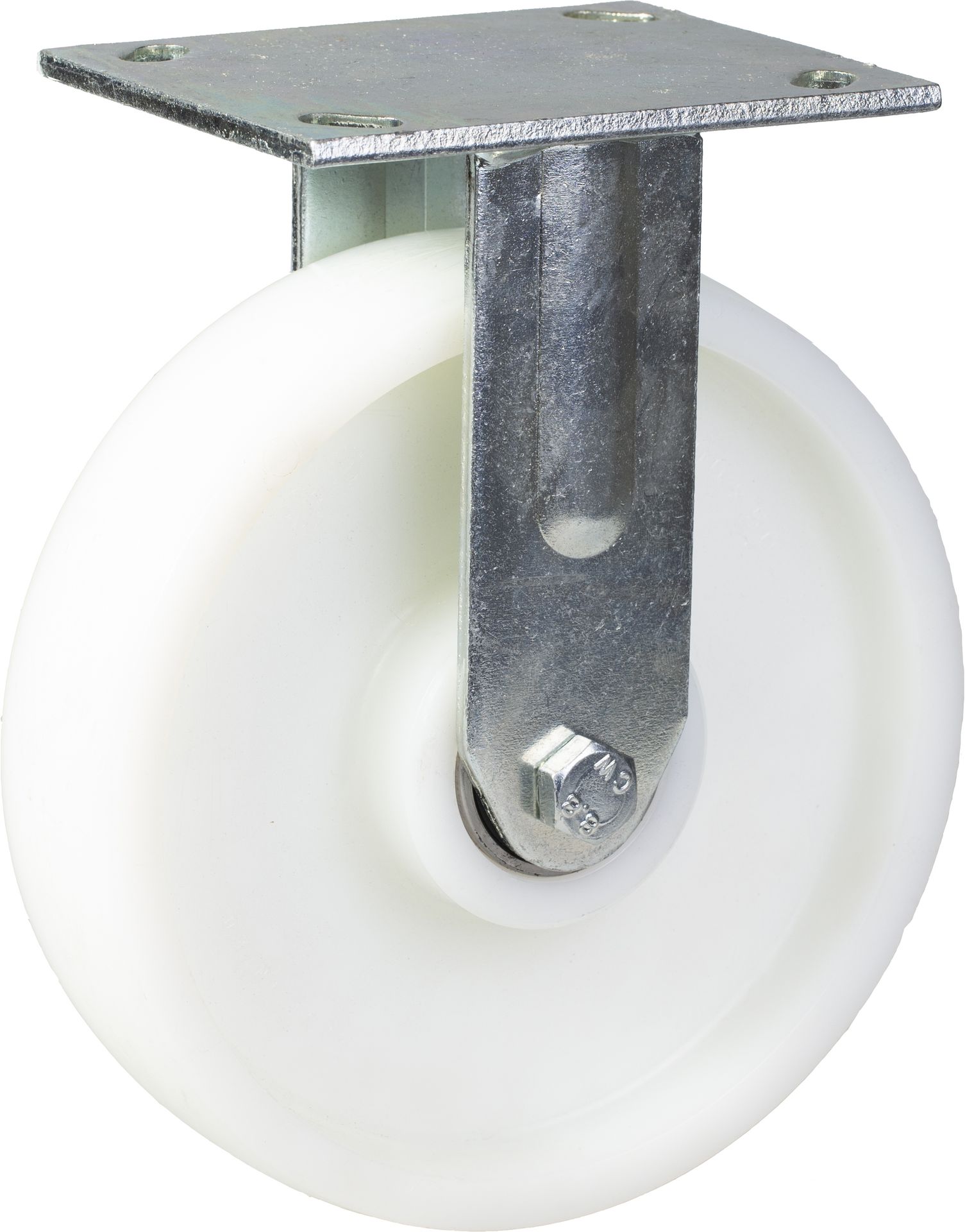 Fixed castor with strong top plate bracket made of zinc plated steel.