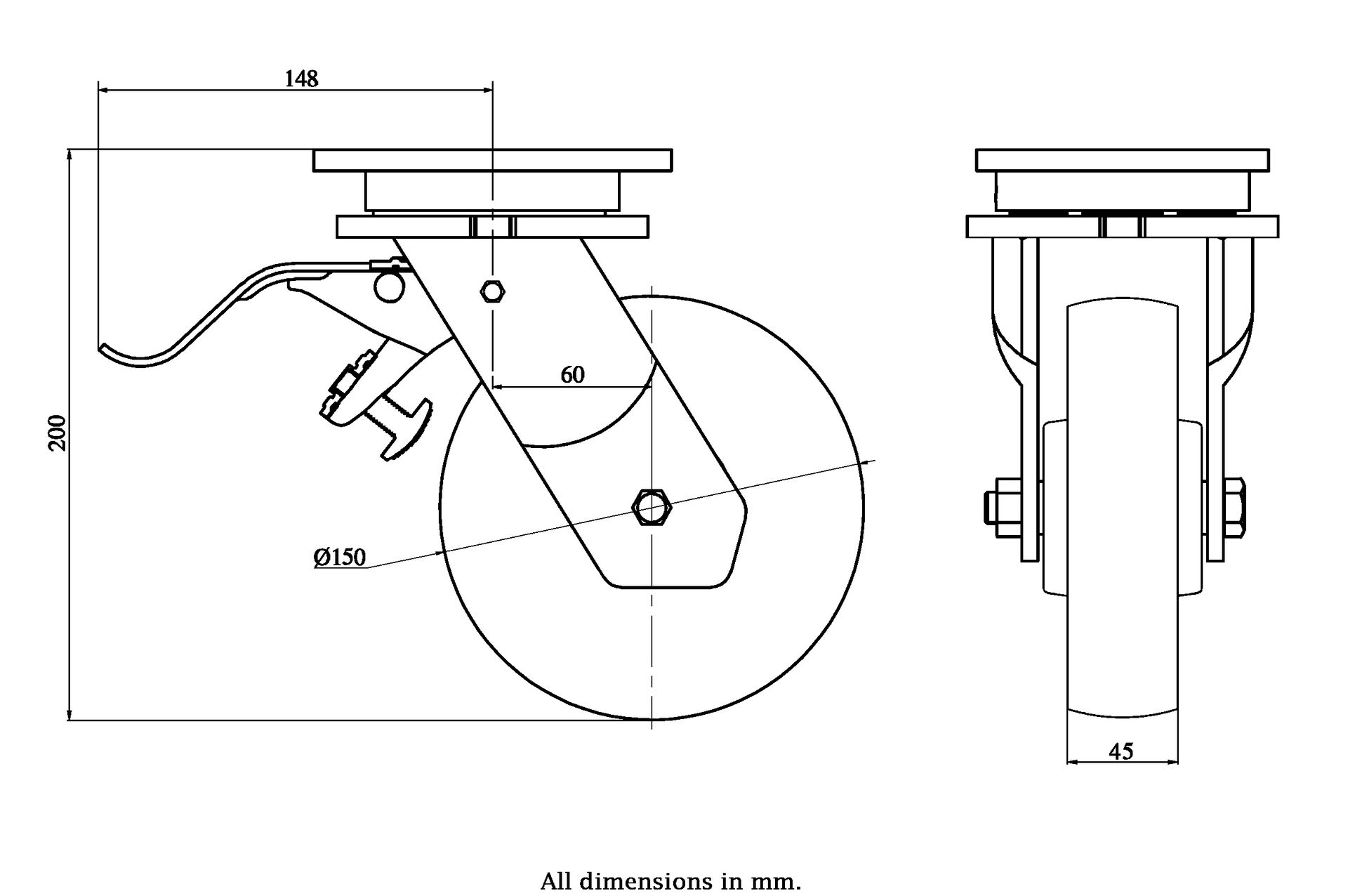 Wheel Diameter: 150mm (6" inches)