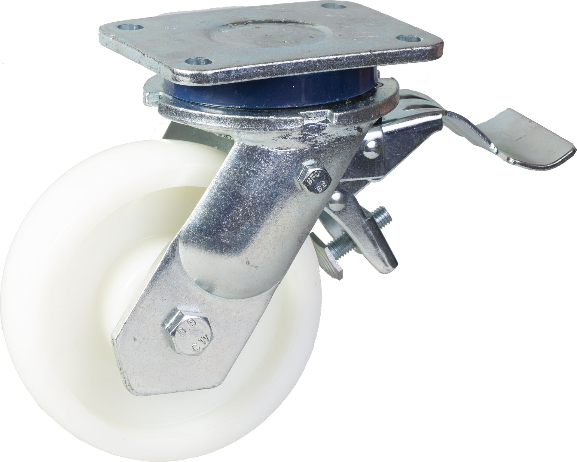 150mm swivel/brake castor with white nylon wheel