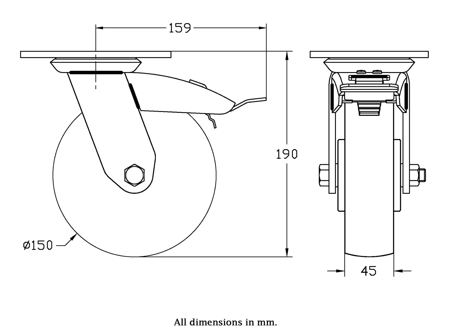 Wheel Diameter: 150mm (6" inches)