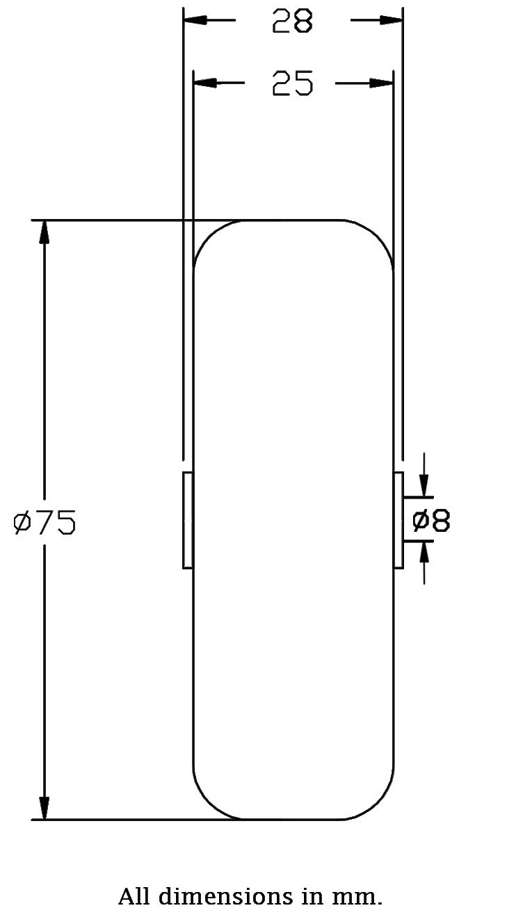 75mm wheel with grey thermoplastic rubber on polypropylene centre