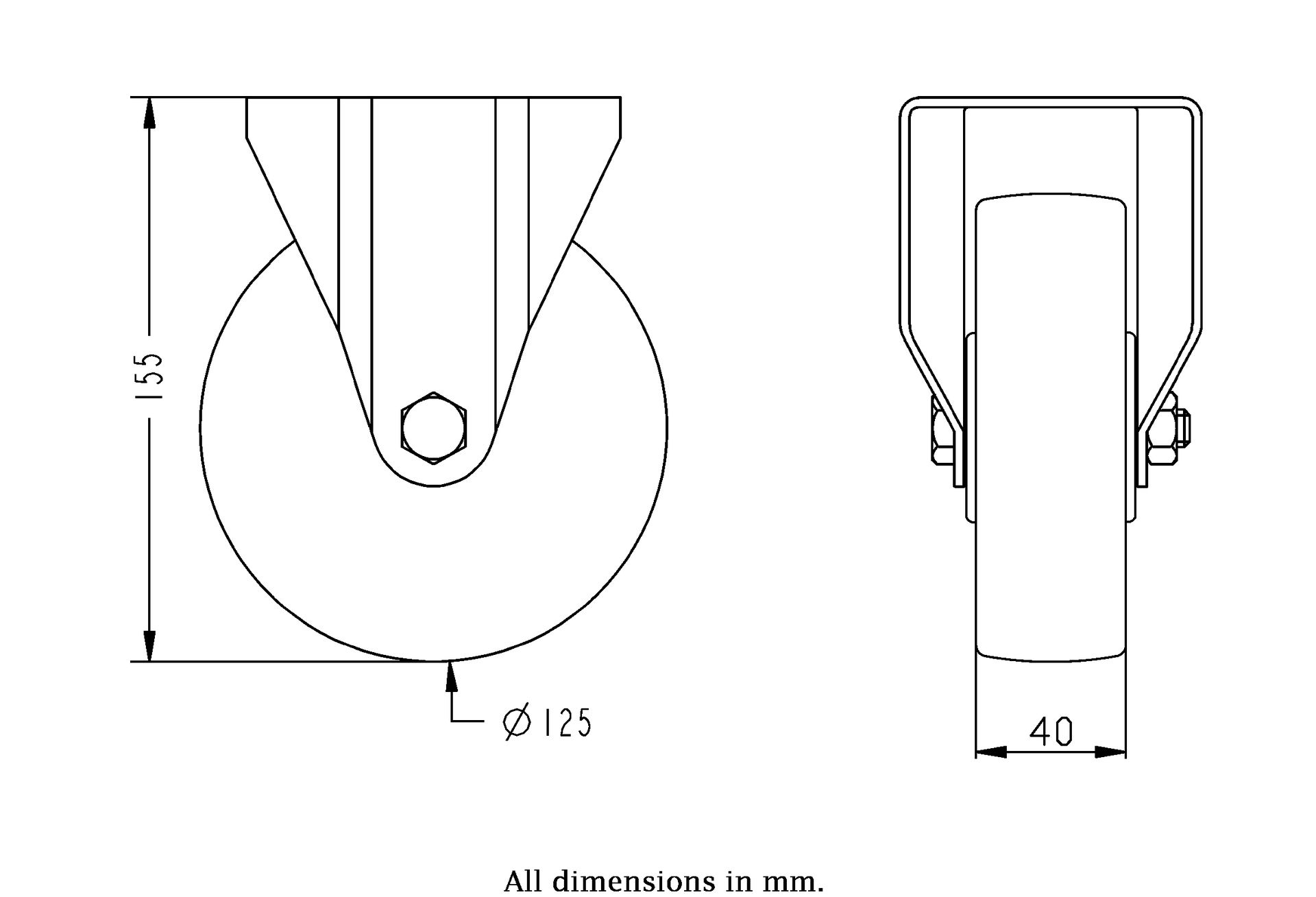 • Fixed castor with strong top plate bracket made of stainless steel (material no. 1.4301/AISI 304).