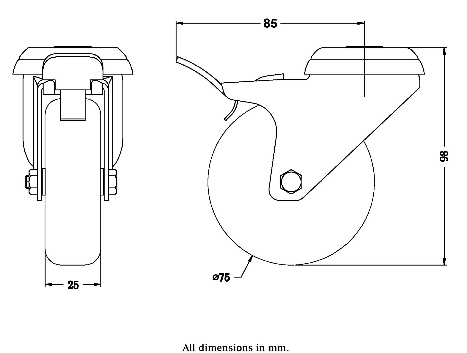 Castor Bracket Material: Zinc Plated Steel