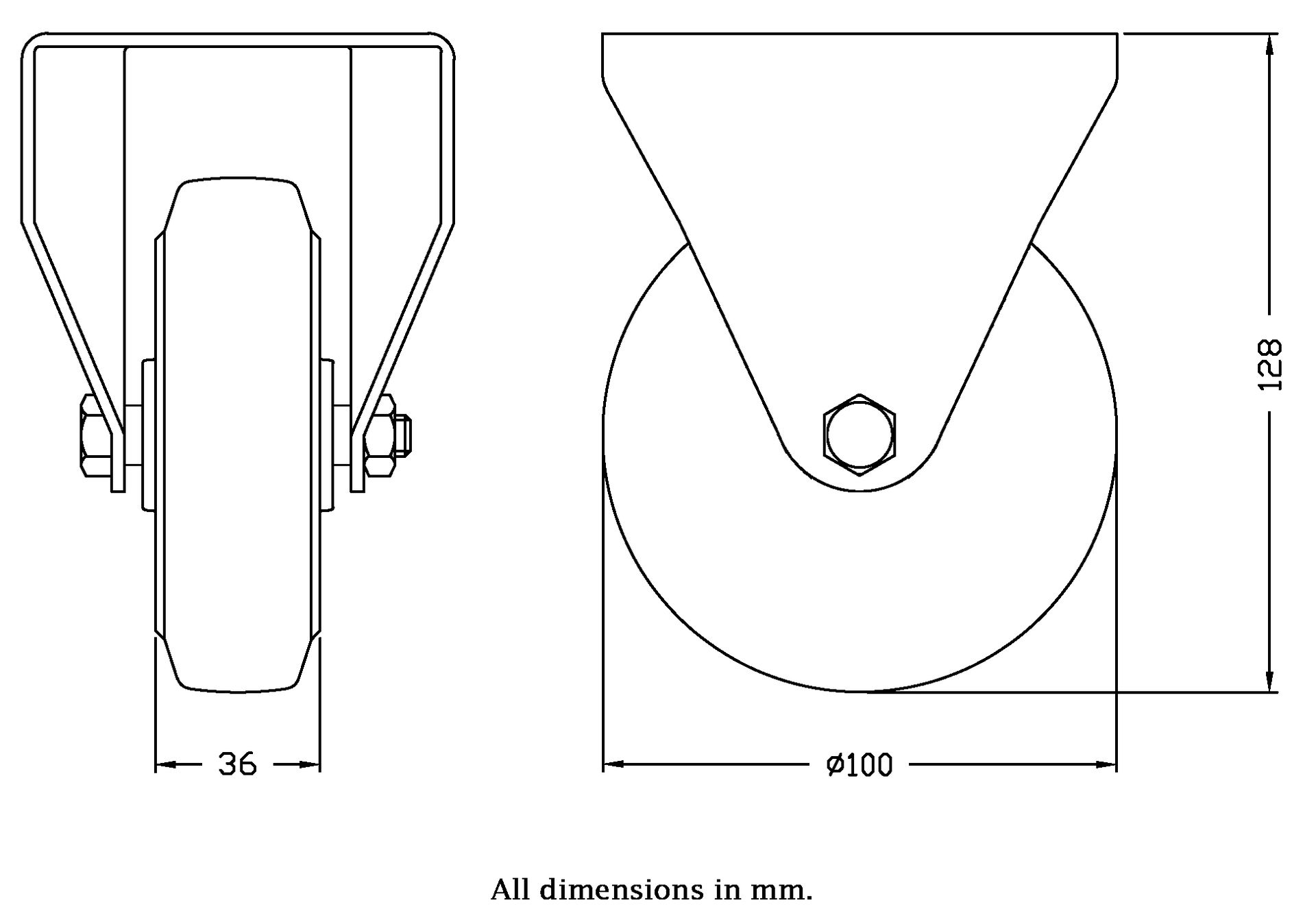 - Fixed castor with top plate bracket made of zinc plated steel.