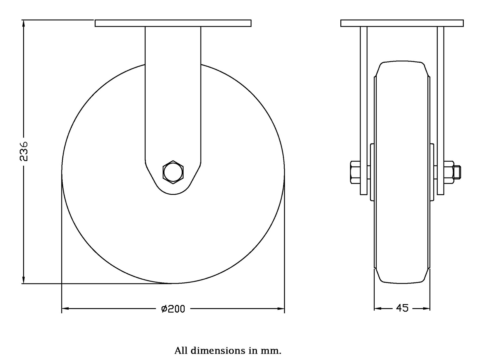 Wheel Diameter: 200mm (8" inches)