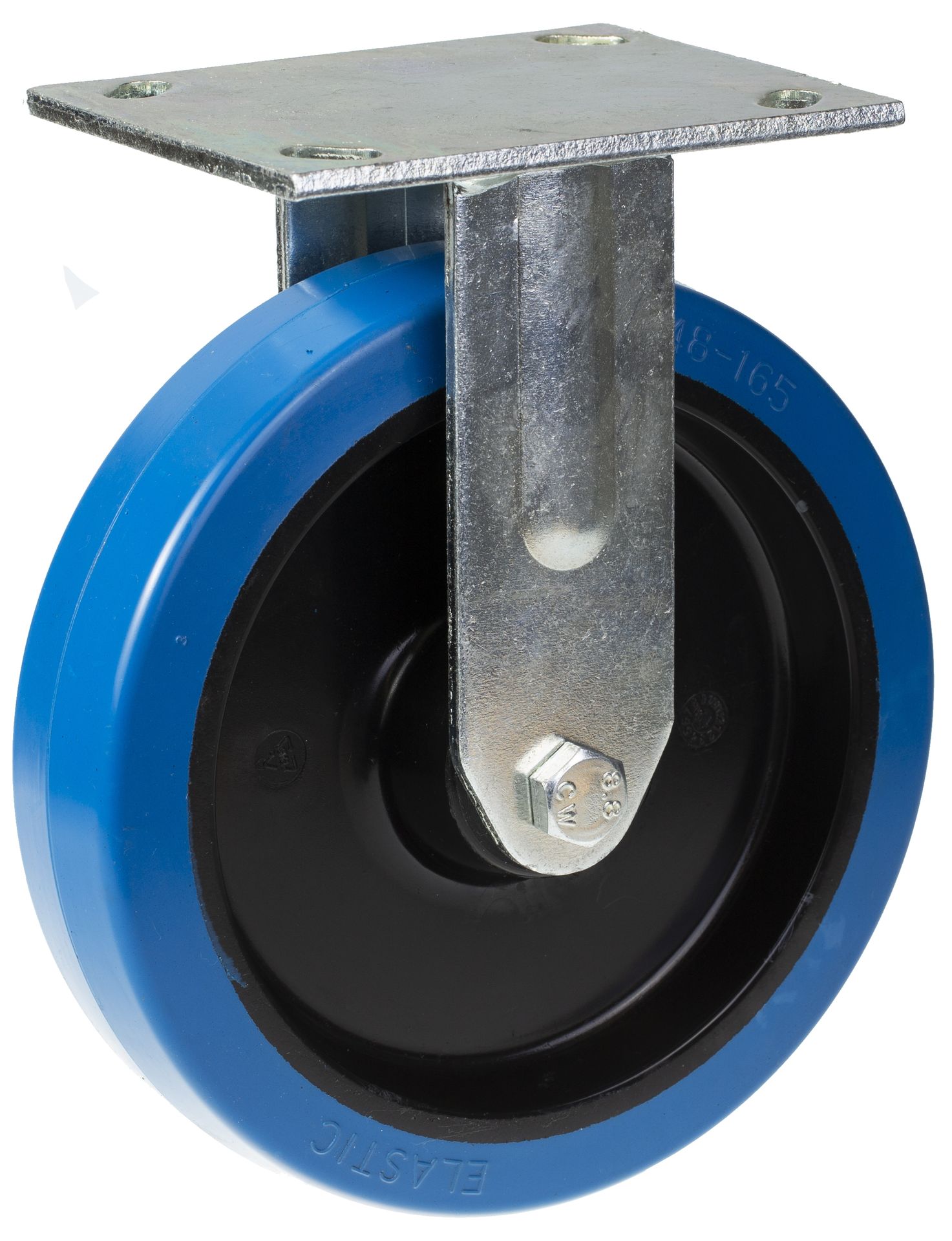 200mm fixed castor with blue elastic rubber on nylon centre wheel