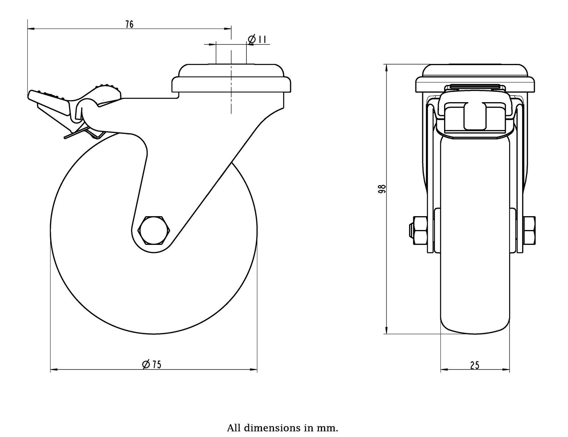 Wheel Diameter: 75mm (3 Inches)
