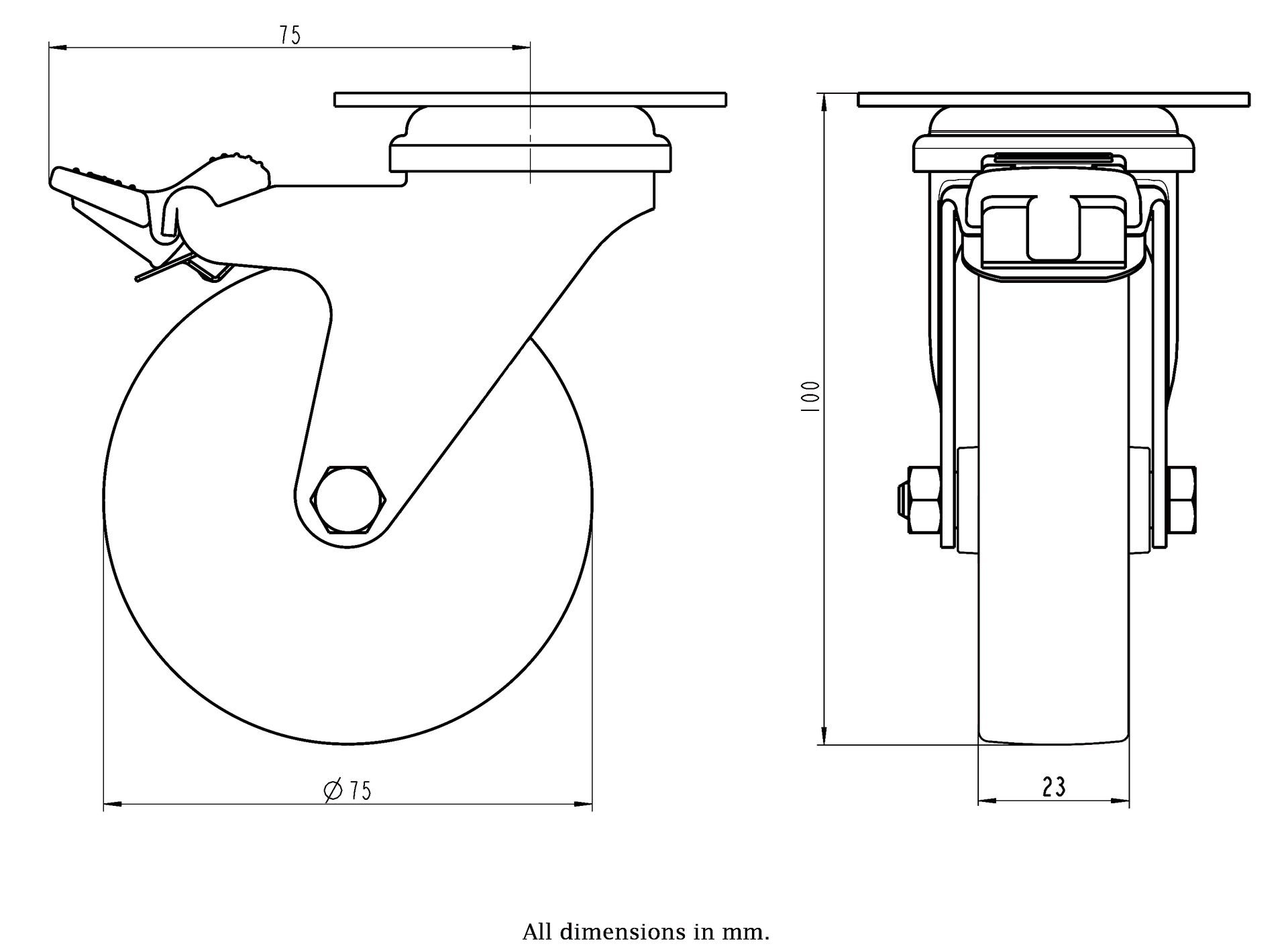 Wheel Diameter: 75mm (3" inches)