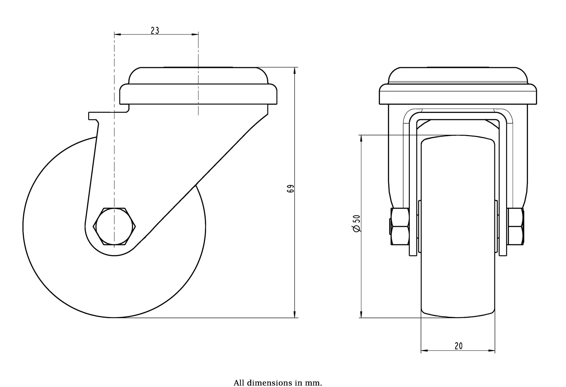 Wheel Diameter: 50mm (2" inches)