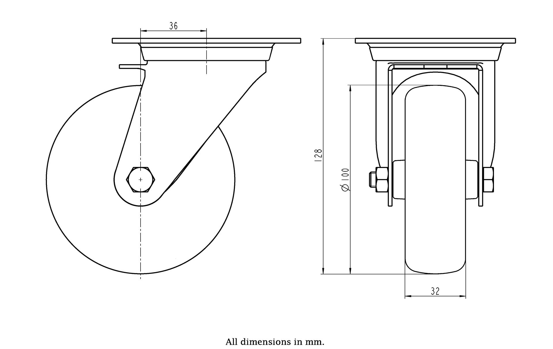 Wheel Diameter: 100mm (4" inches)
