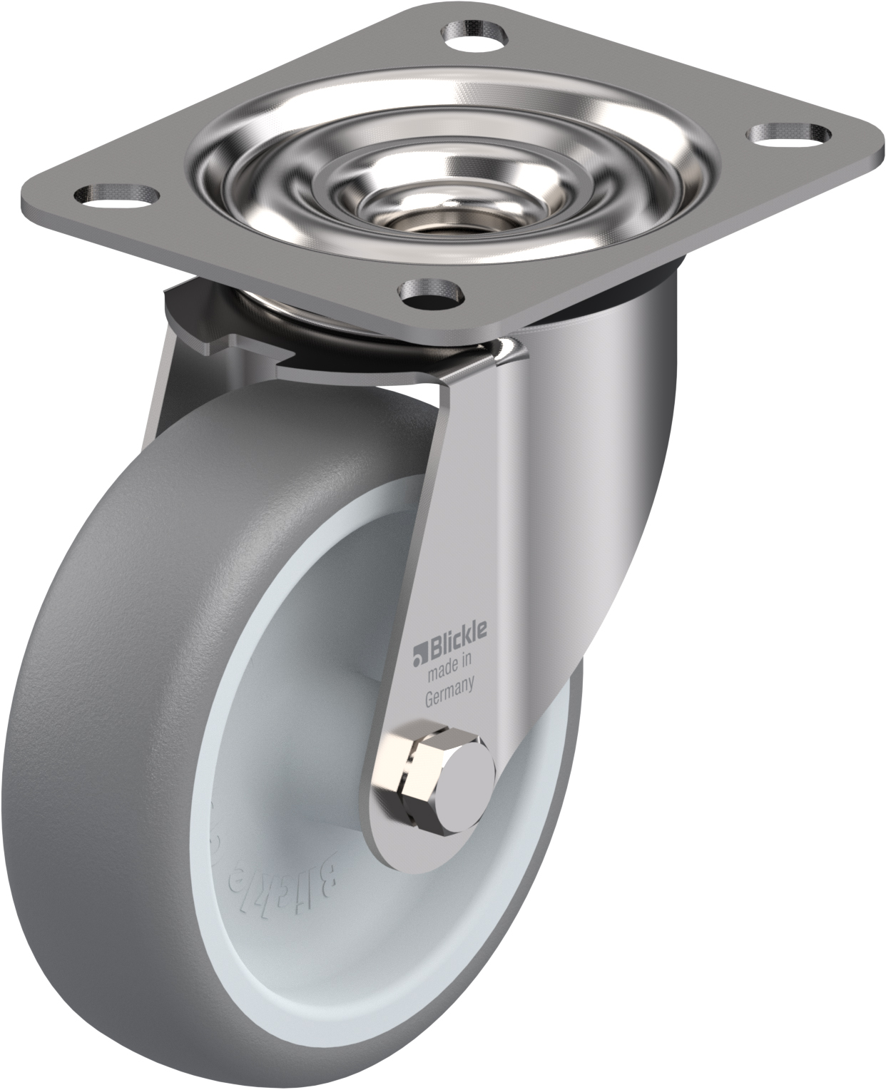 100mm stainless steel swivel castor with grey thermoplastic rubber on polypropylene centre wheel