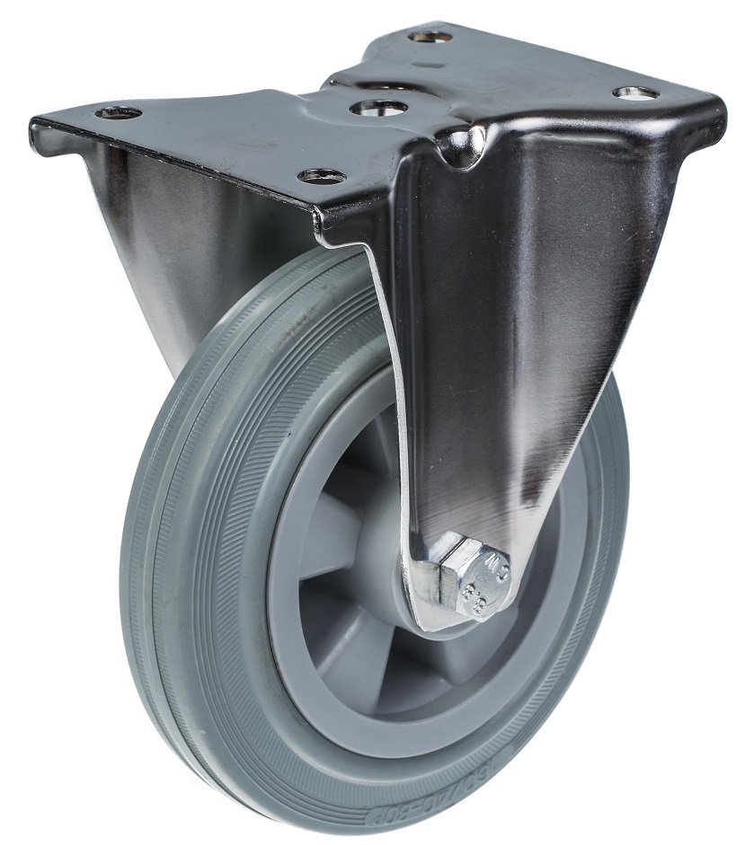 160mm stainless steel fixed castor with grey rubber on polypropylene centre wheel