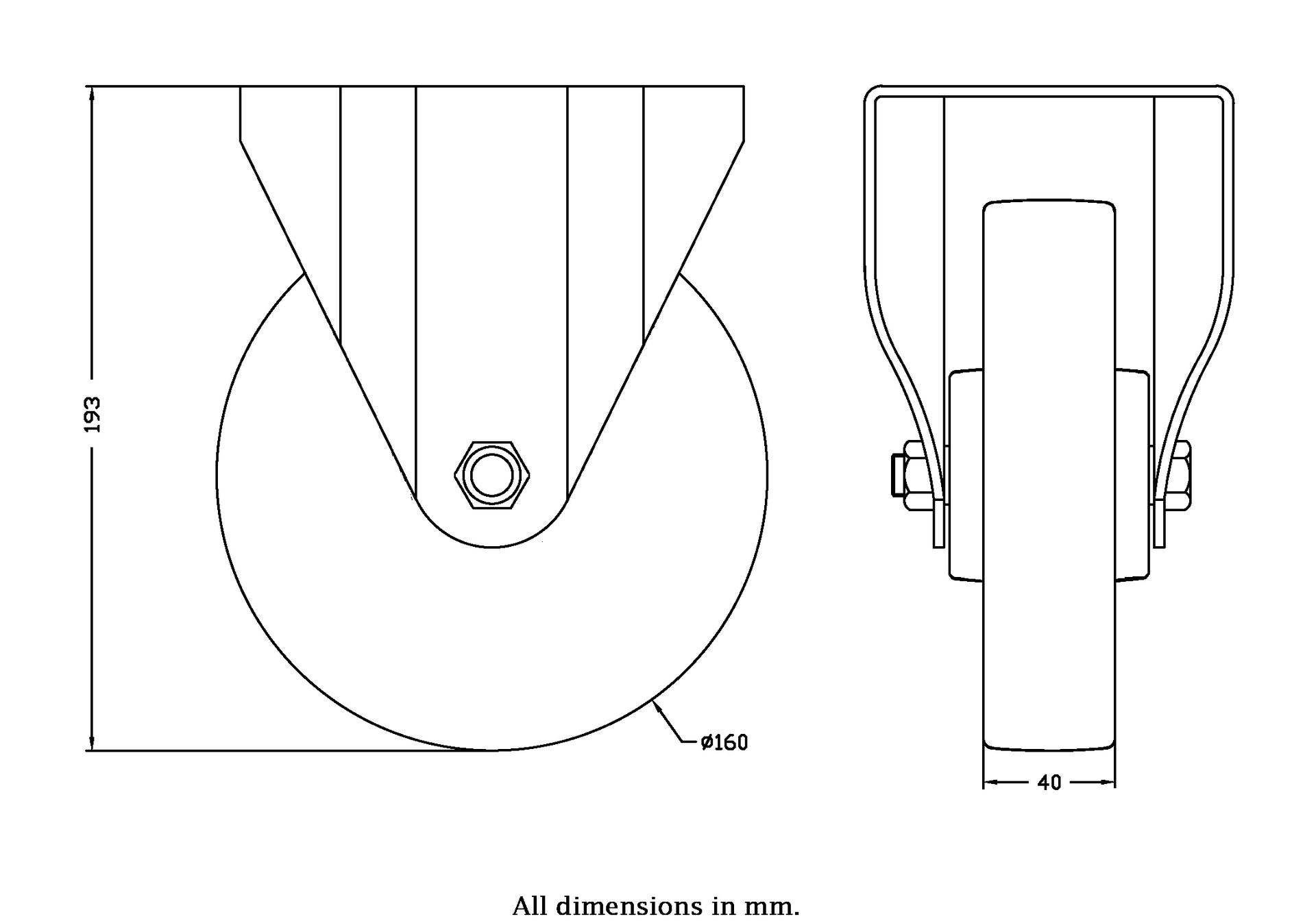 160mm fixed castor with grey electrically conductive thermoplastic polyurethane on nylon centre wheel