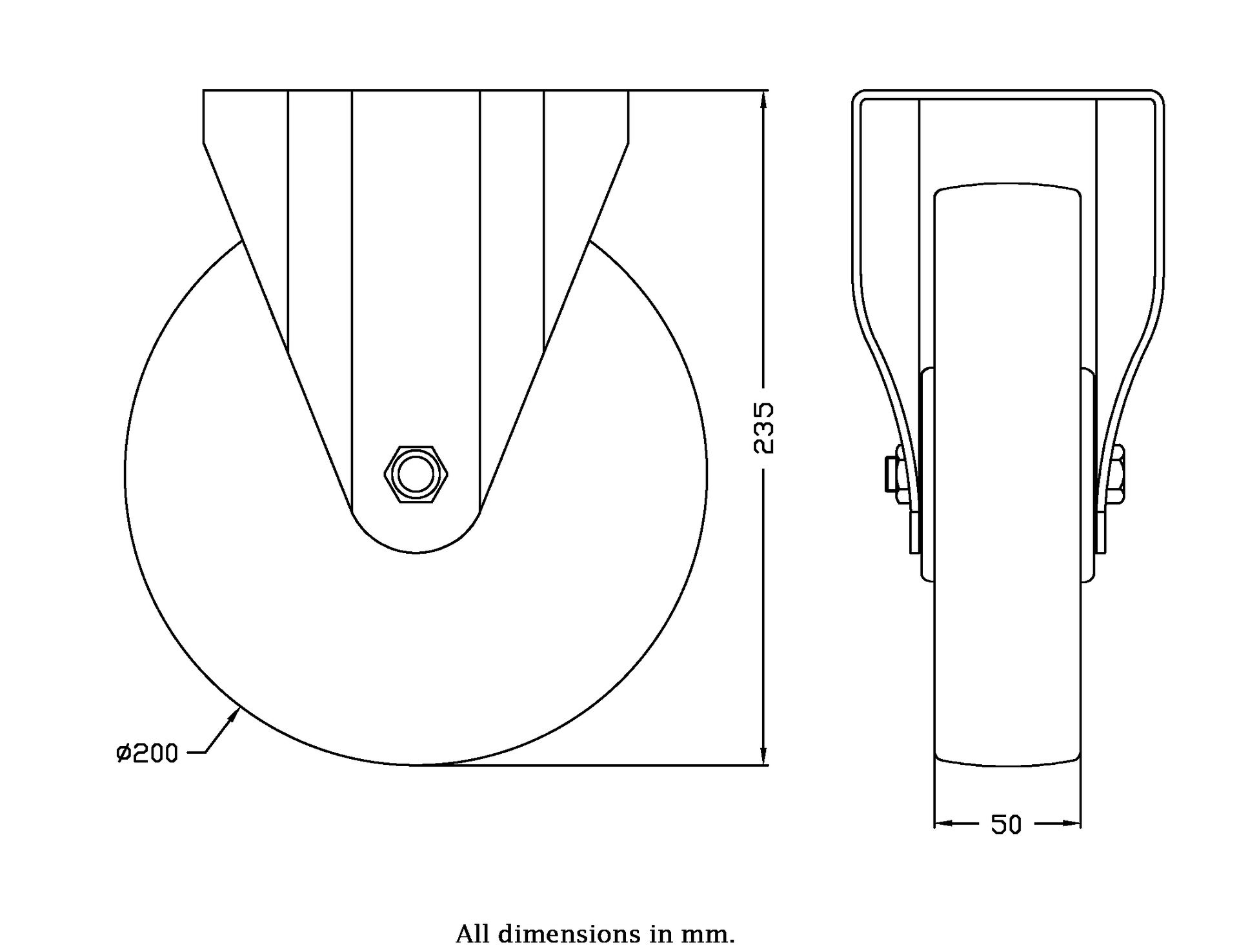 Wheel Diameter: 200mm (8" inches)