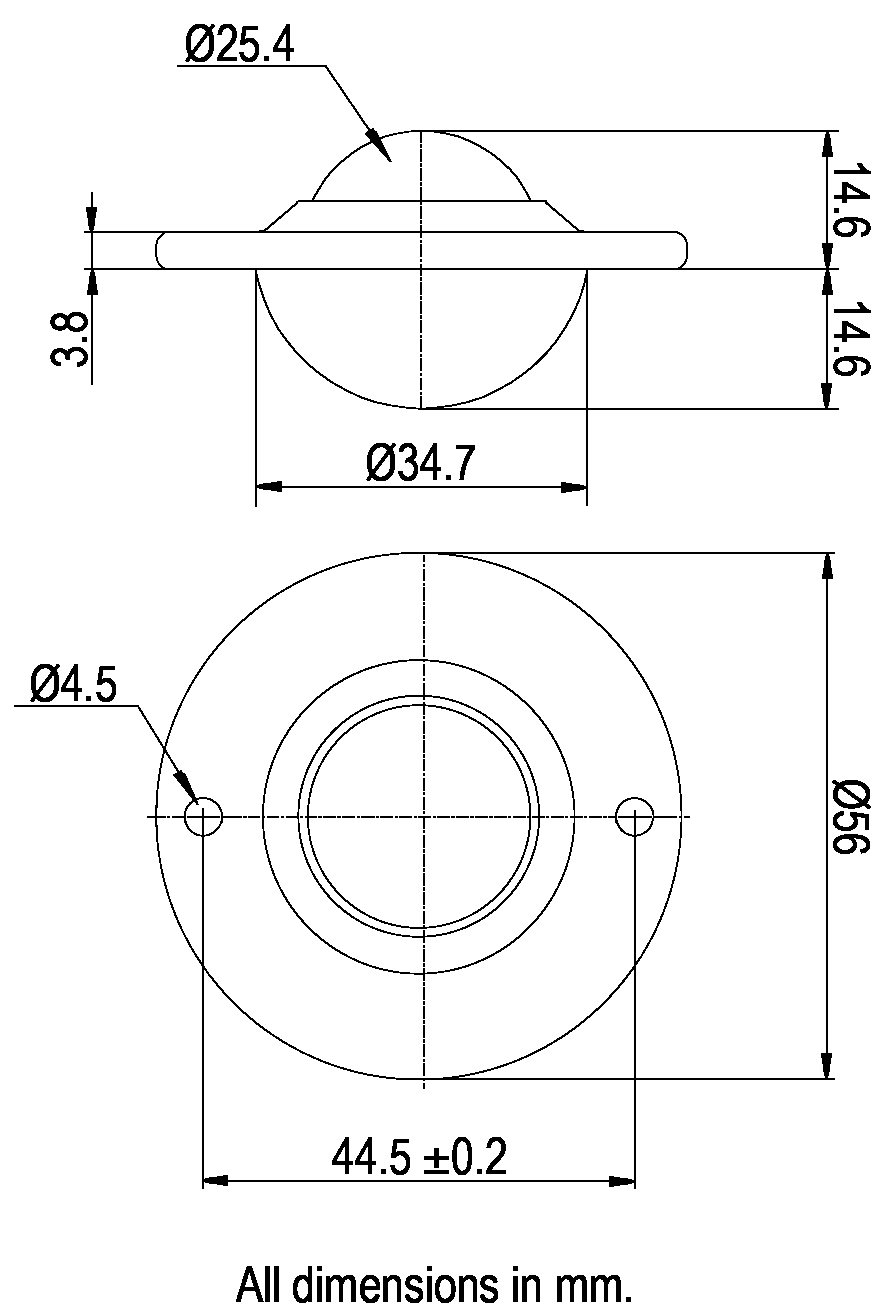 Ball Transfer Unit Flange 56mm Fixing, Carbon Chrome Load Ball Diameter 25.4mm