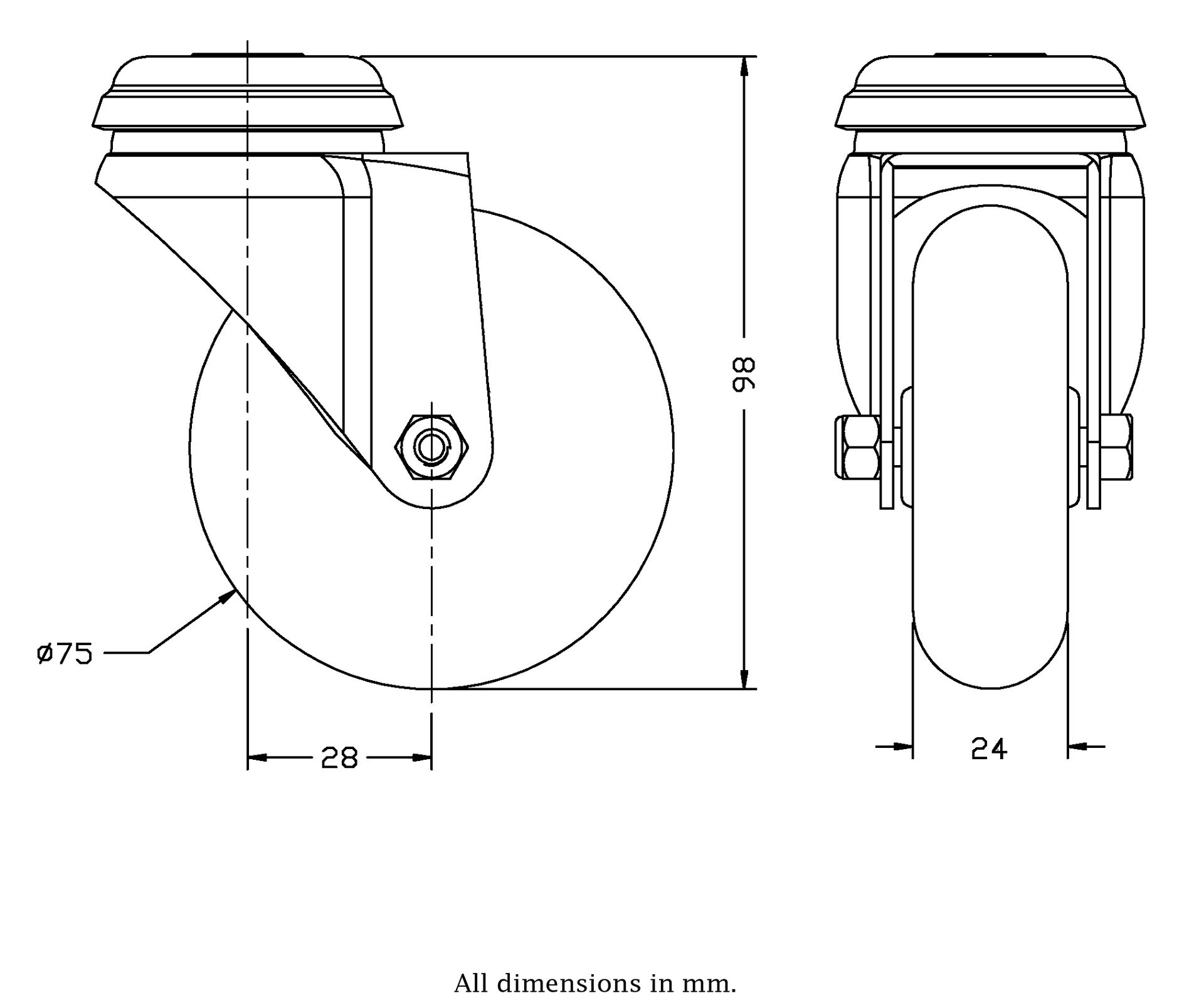 Wheel Diameter: 75mm (3" inches)