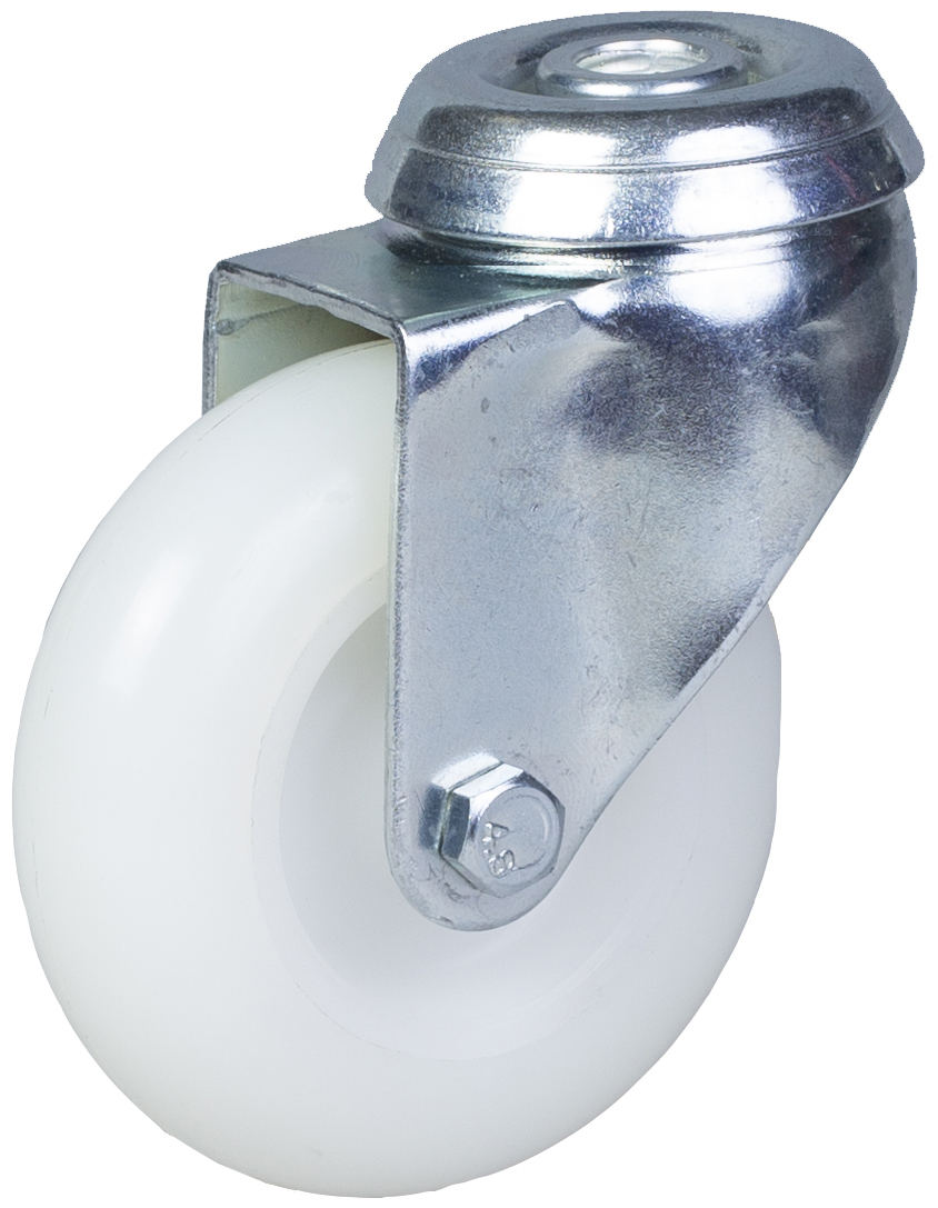 75mm swivel castor with white nylon tread on polypropylene centre wheel