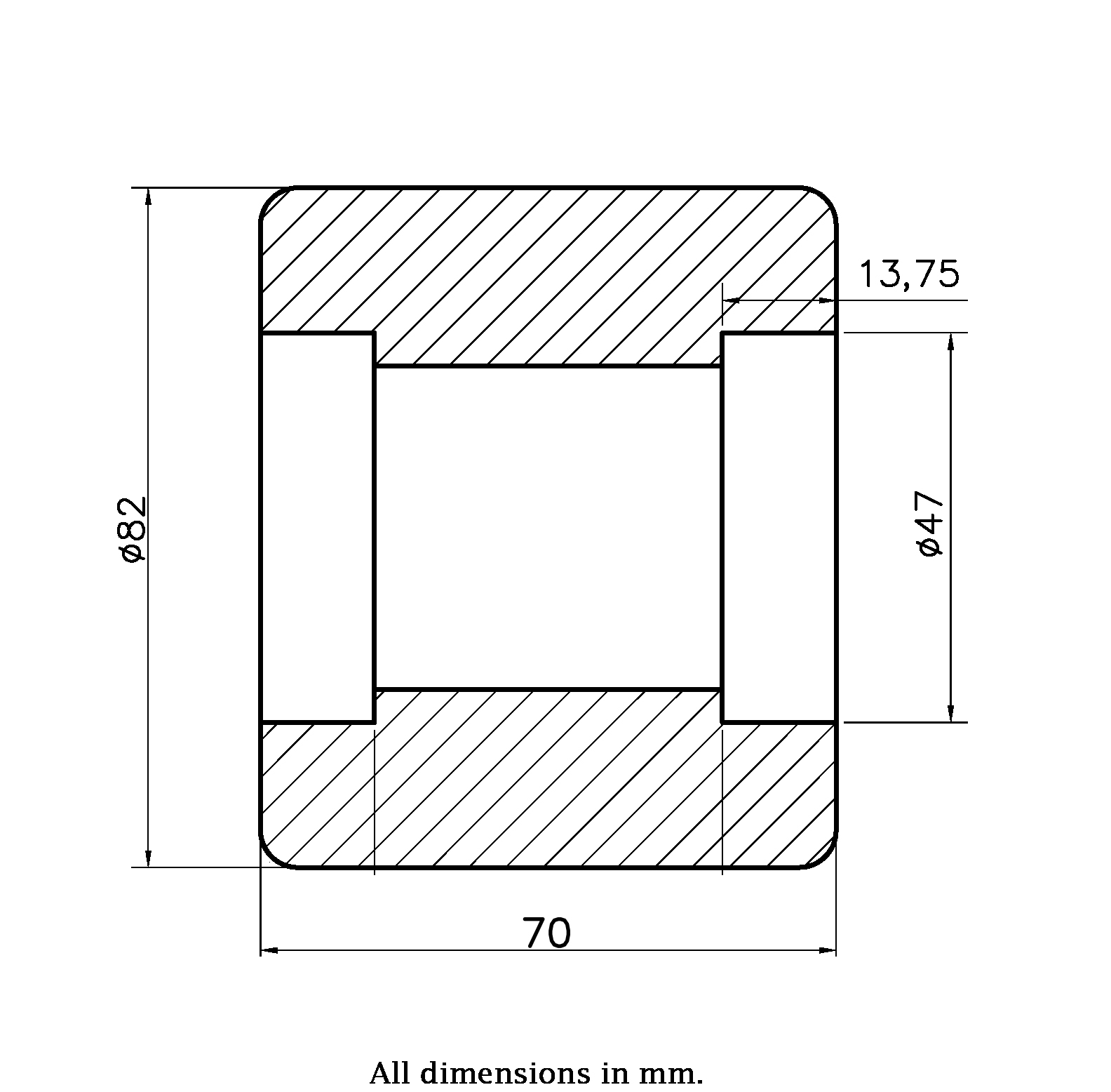 Delivered without ball bearings (bearing seats 47x13.75mm).