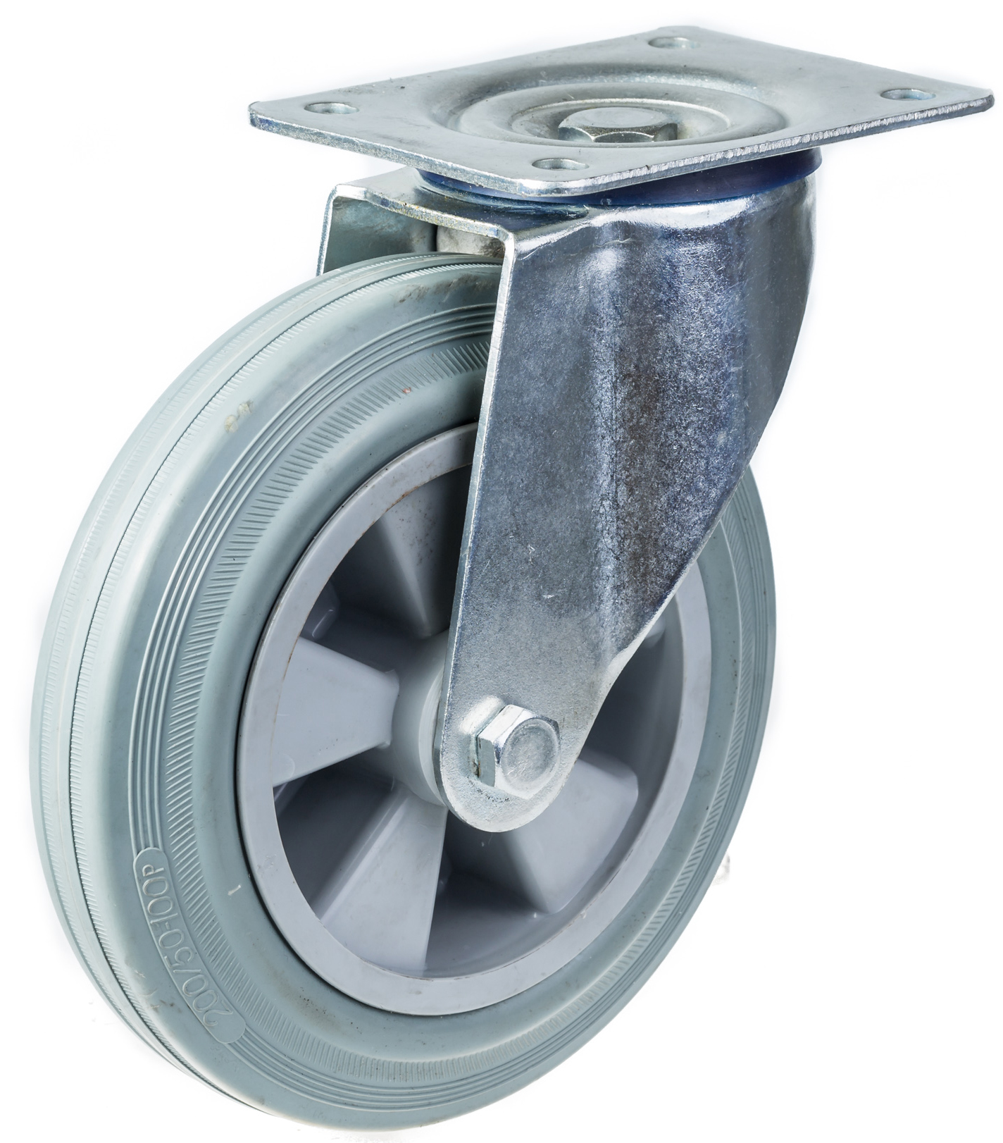 200mm swivel castor with grey rubber on polypropylene centre wheel