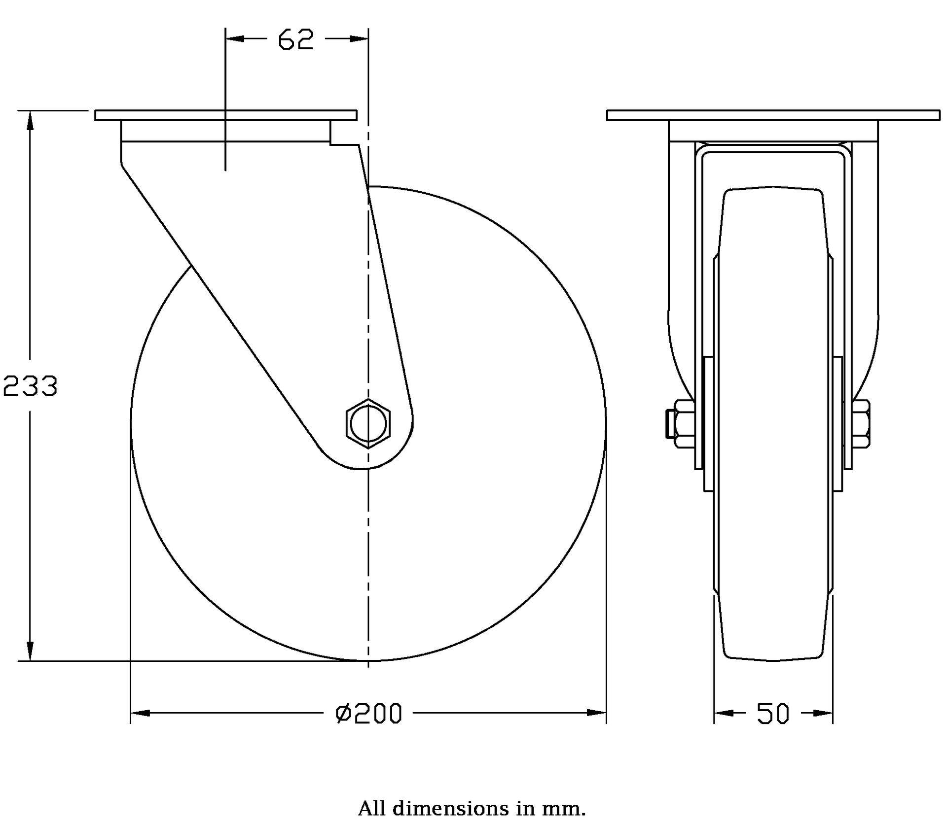 Wheel Diameter: 200mm (8" inches)