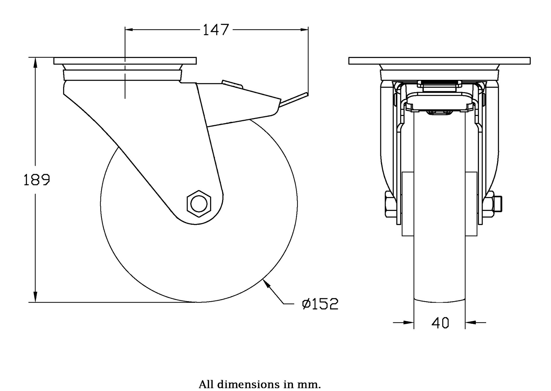 Wheel Diameter: 152mm (6" inches)