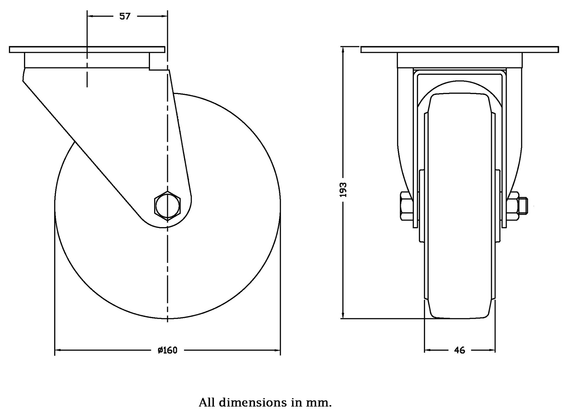 Wheel Diameter: 160mm (6" inches)
