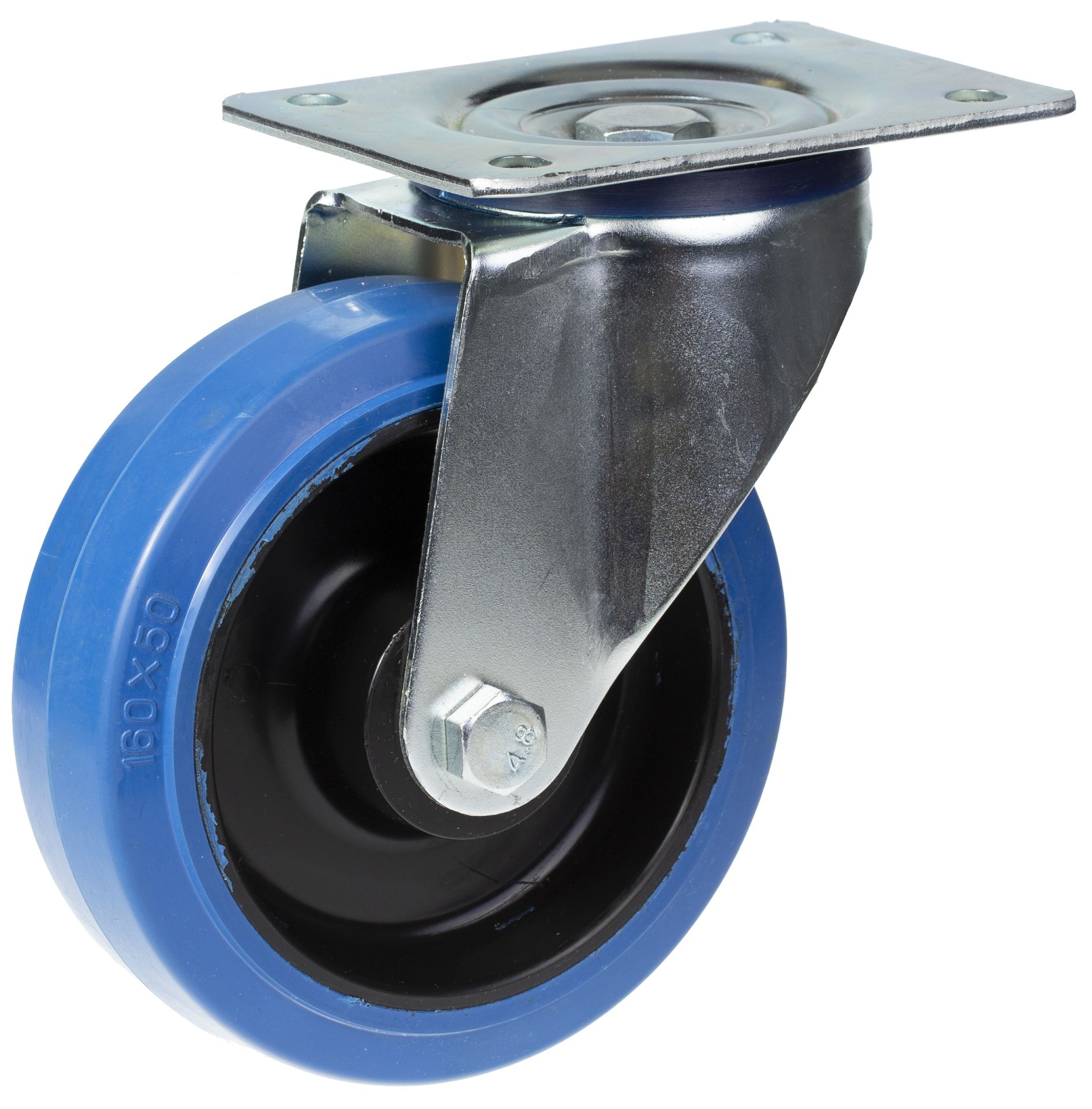 160mm swivel castor with blue elastic rubber on nylon centre wheel