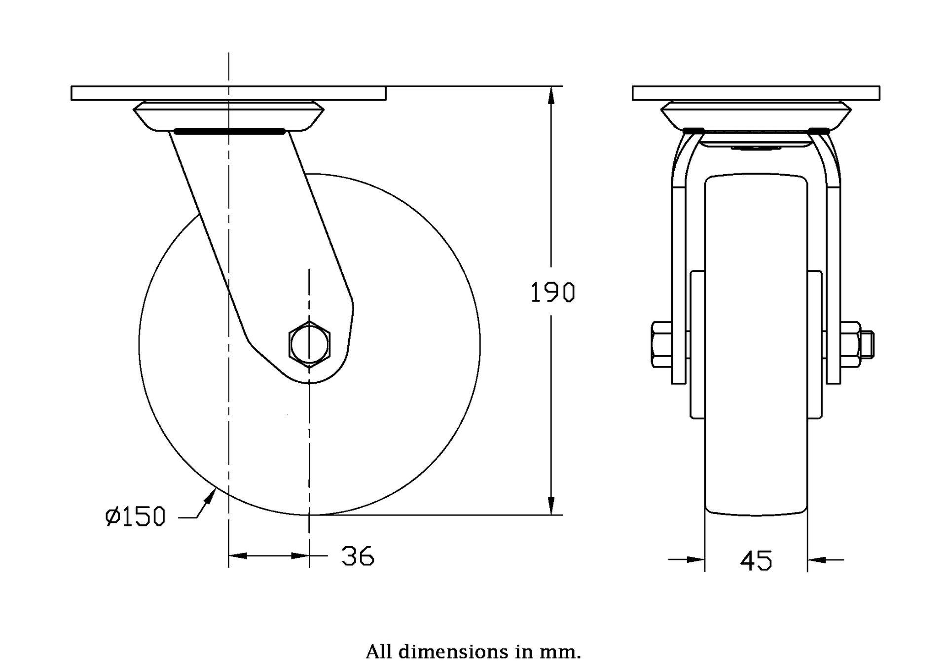 Wheel Diameter: 150mm (6" inches)