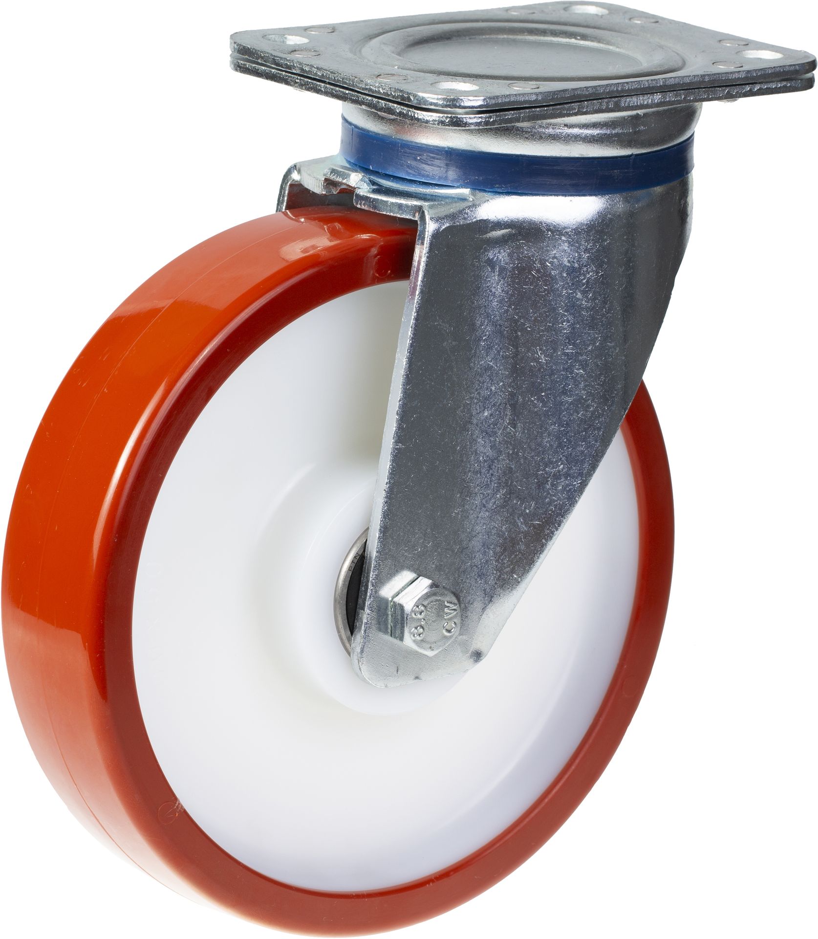 200mm swivel castor with red thermoplastic polyurethane on nylon centre wheel