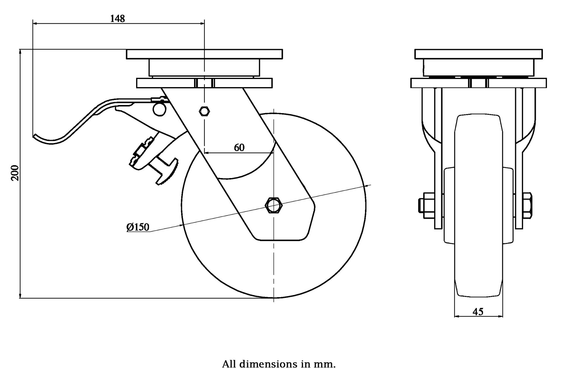 Wheel Diameter: 150mm (6" inches)