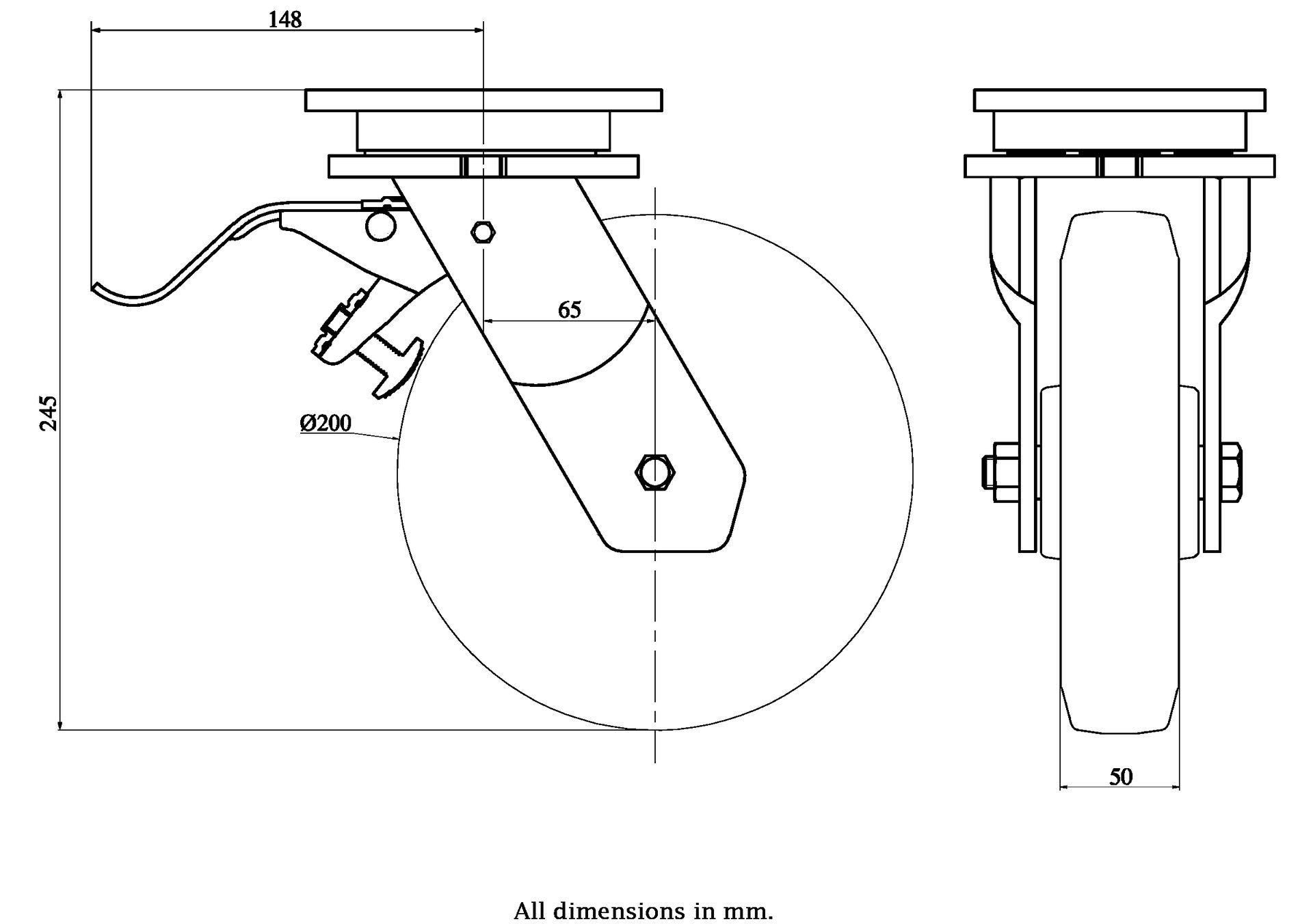 Wheel Diameter: 200mm (8" inches)