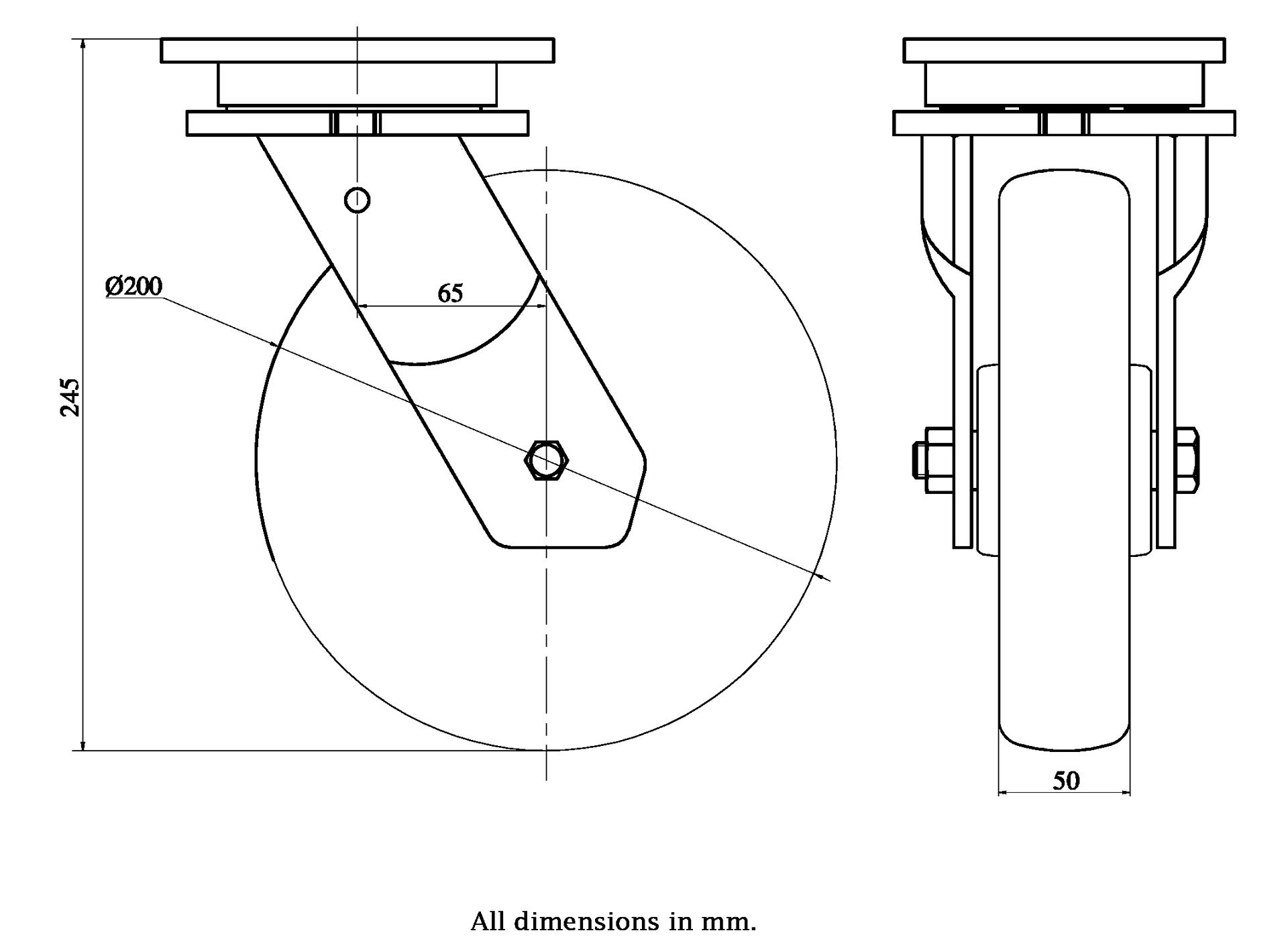 Wheel Diameter: 200mm (8" inches)