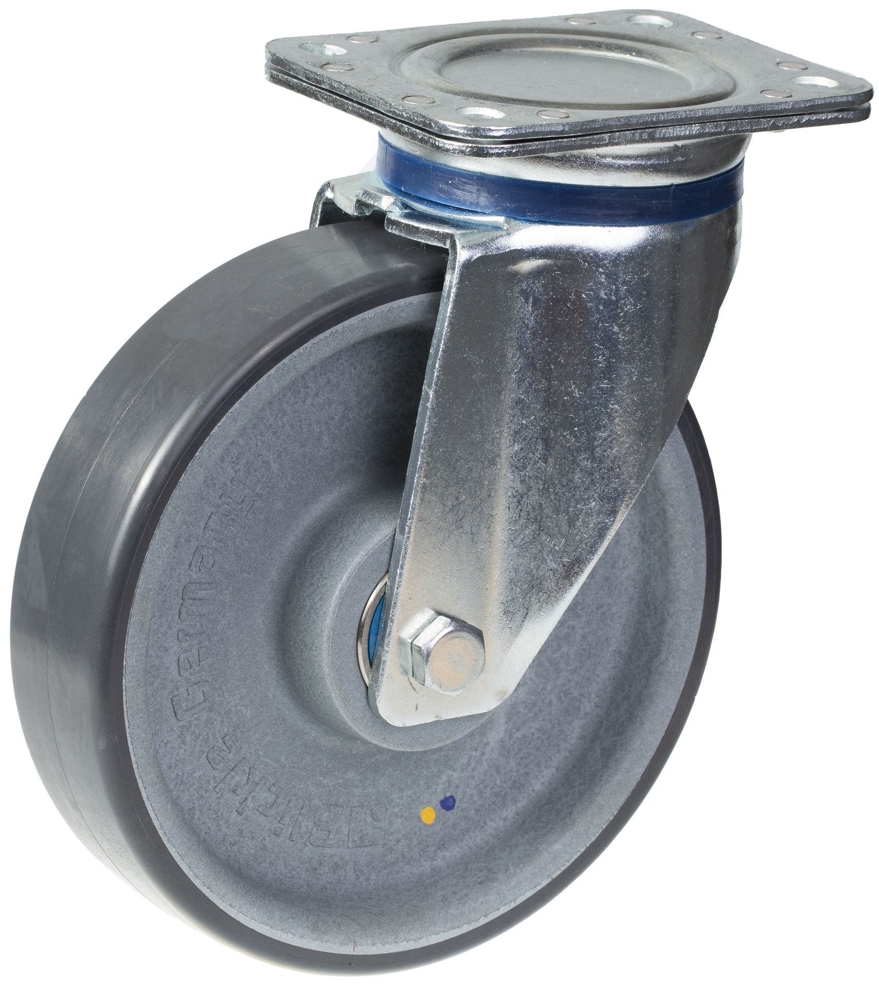 200mm swivel castor with POTH grey electrically conductive thermoplastic polyurethane on nylon centre wheel