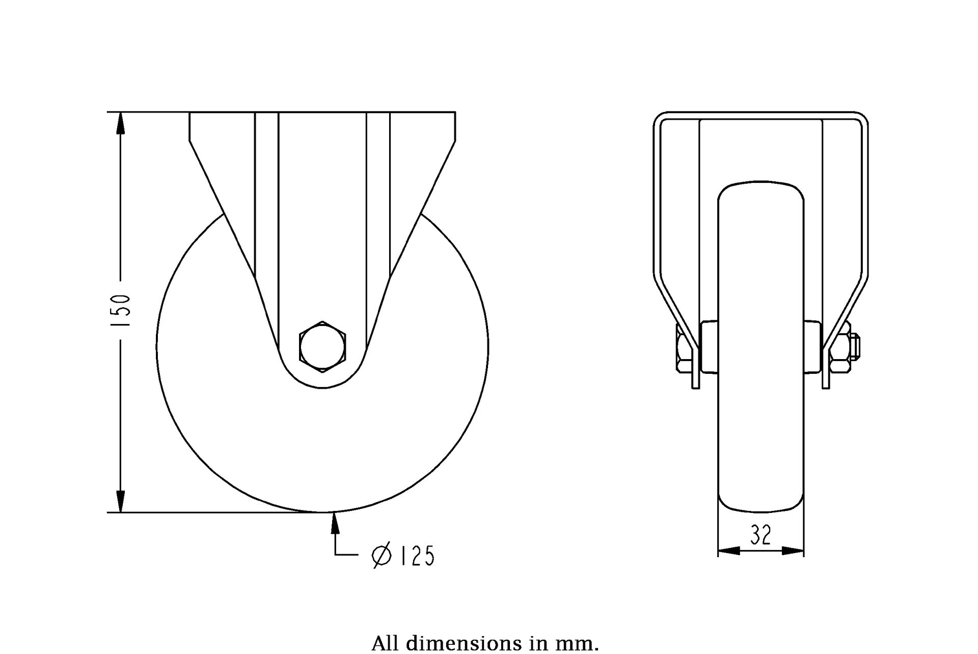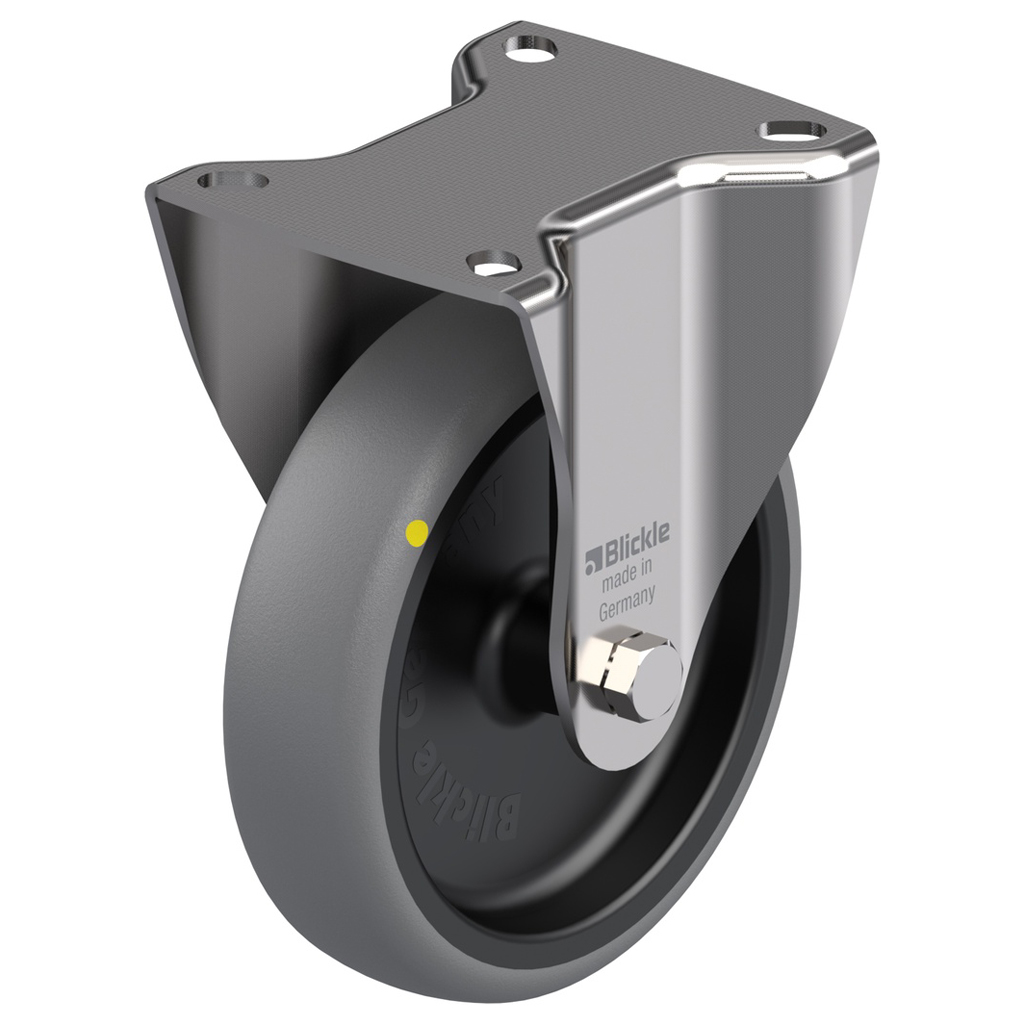 125mm stainless steel fixed castor with grey electrically conductive thermoplastic rubber on polypropylene centre wheel