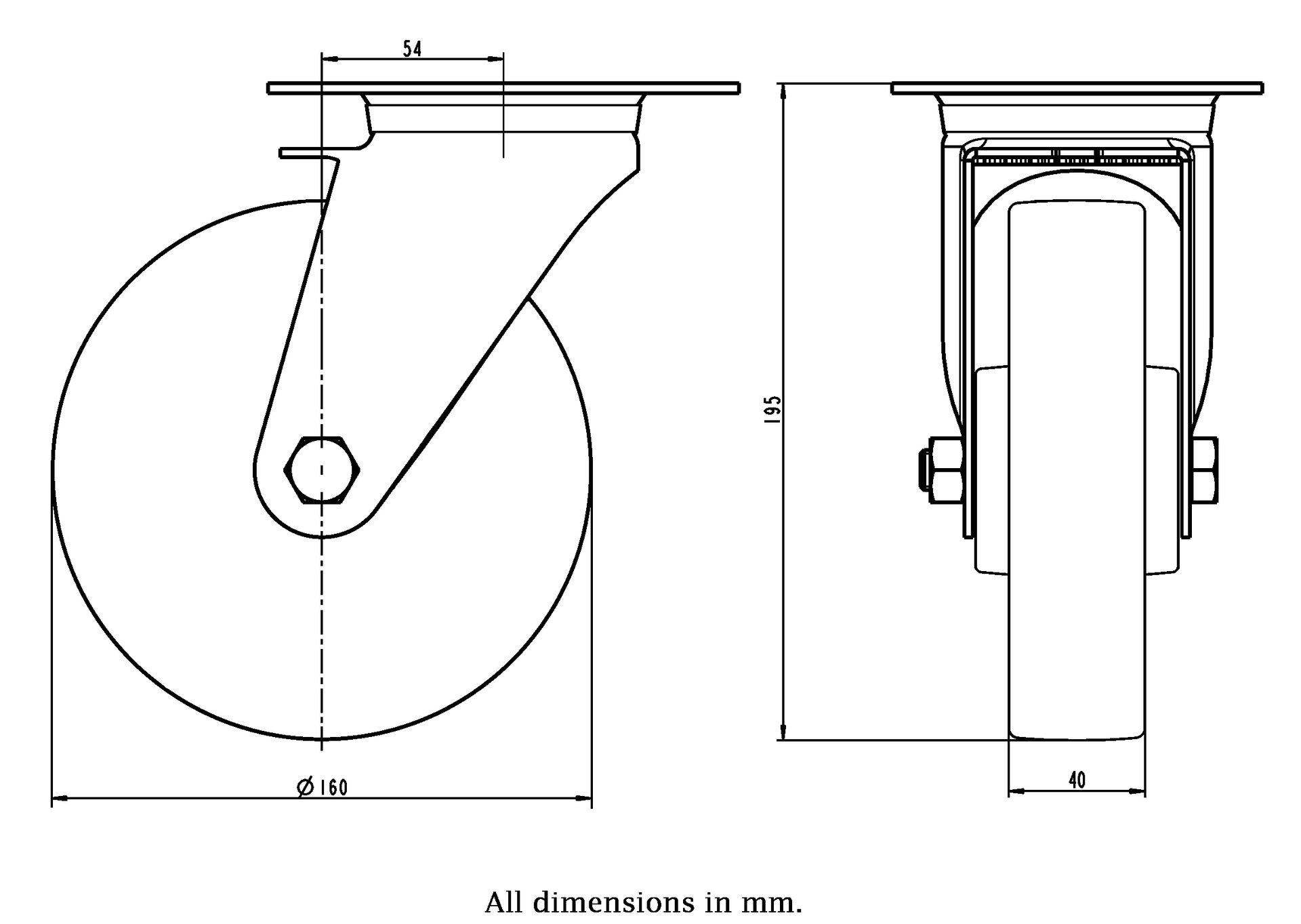 Wheel Diameter: 160mm (6" inches)
