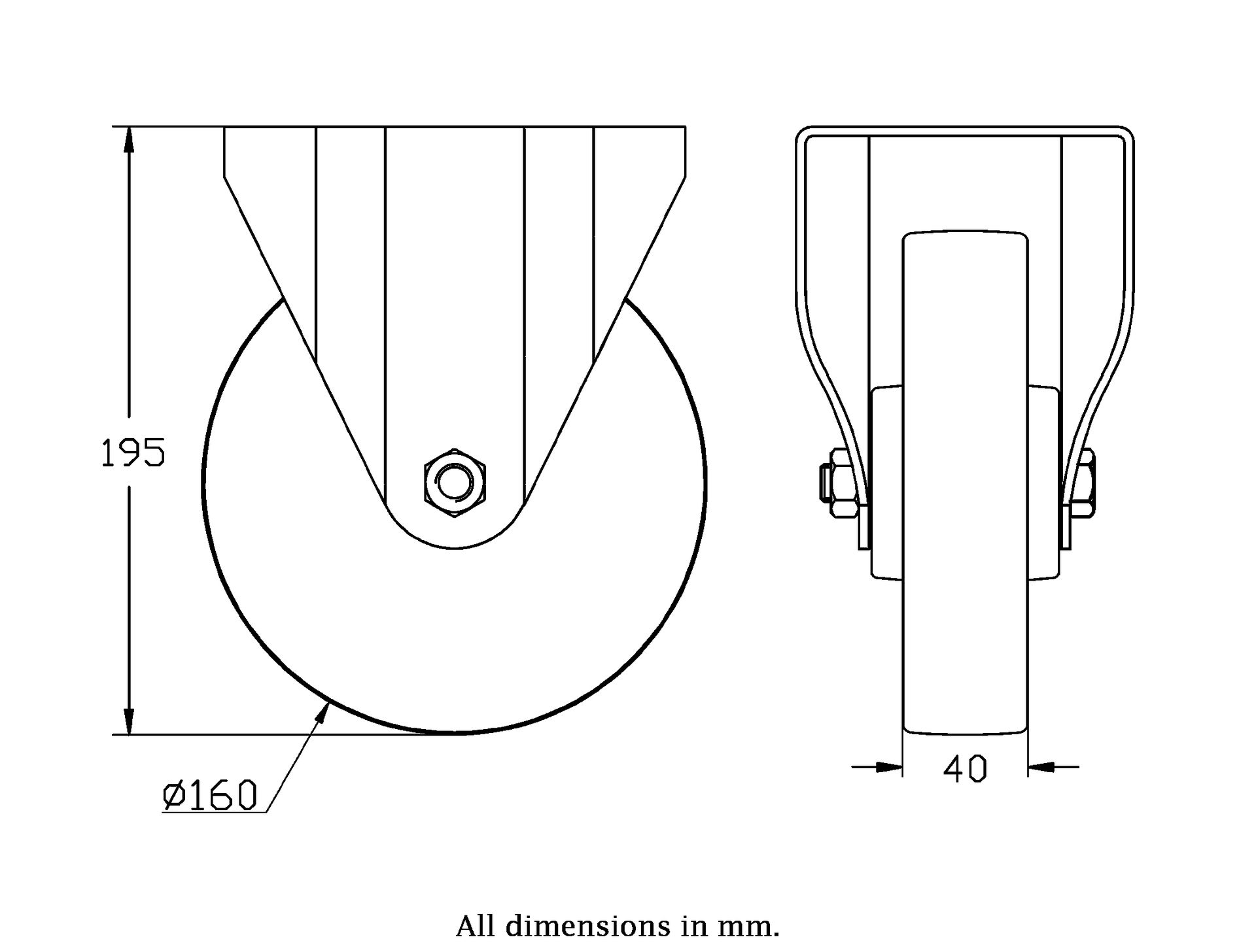 160mm stainless steel fixed castor with POTH grey electrically conductive thermoplastic polyurethane on nylon centre wheel