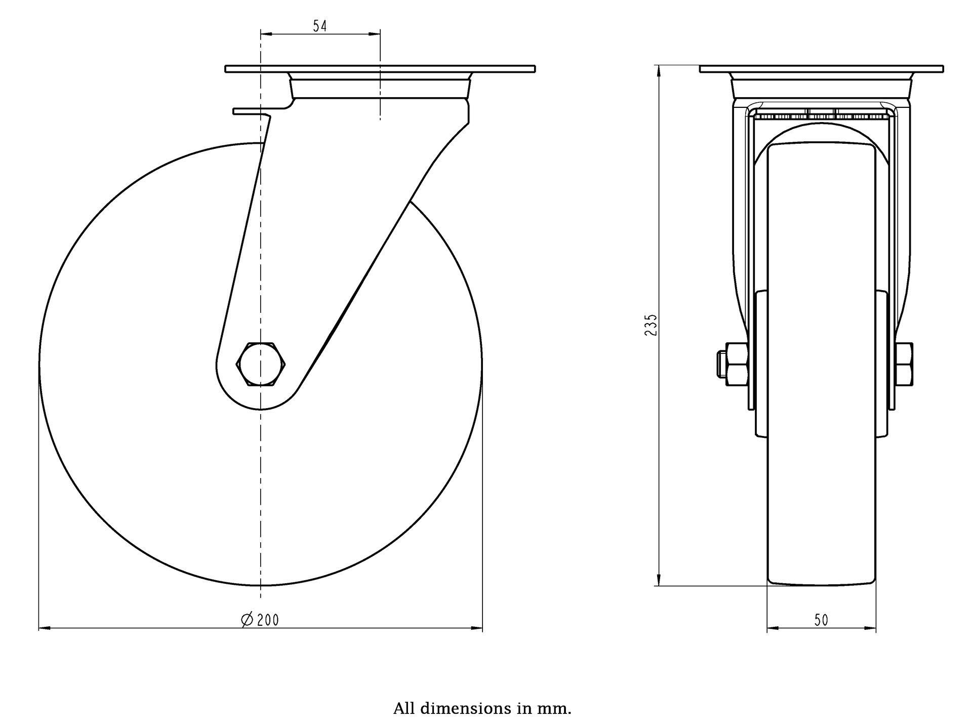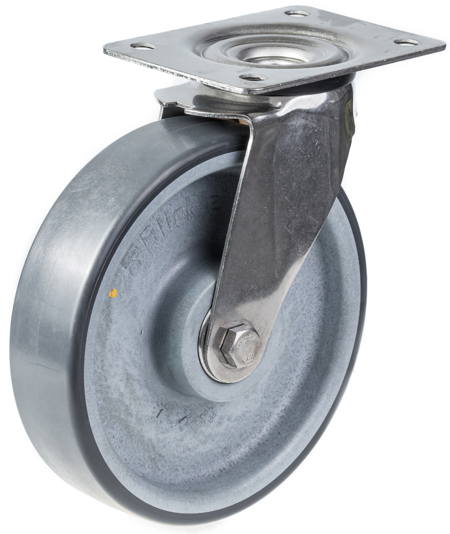 200mm stainless steel swivel castor with POTH grey electrically conductive thermoplastic polyurethane on nylon centre wheel