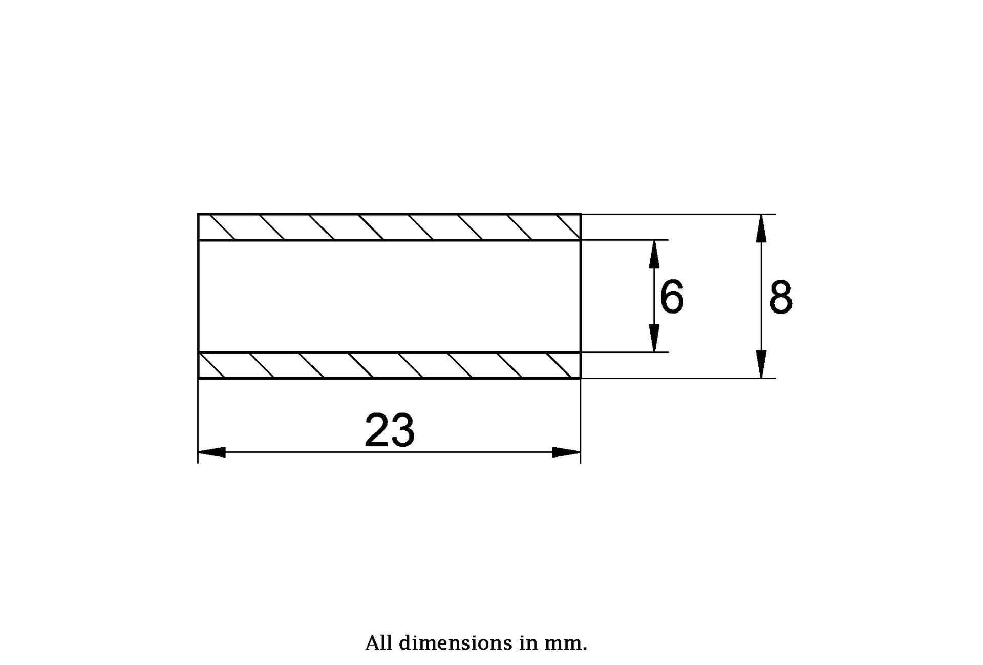 Bush Size: 08x06x23mm (Outside Diameter x Bore x Length)