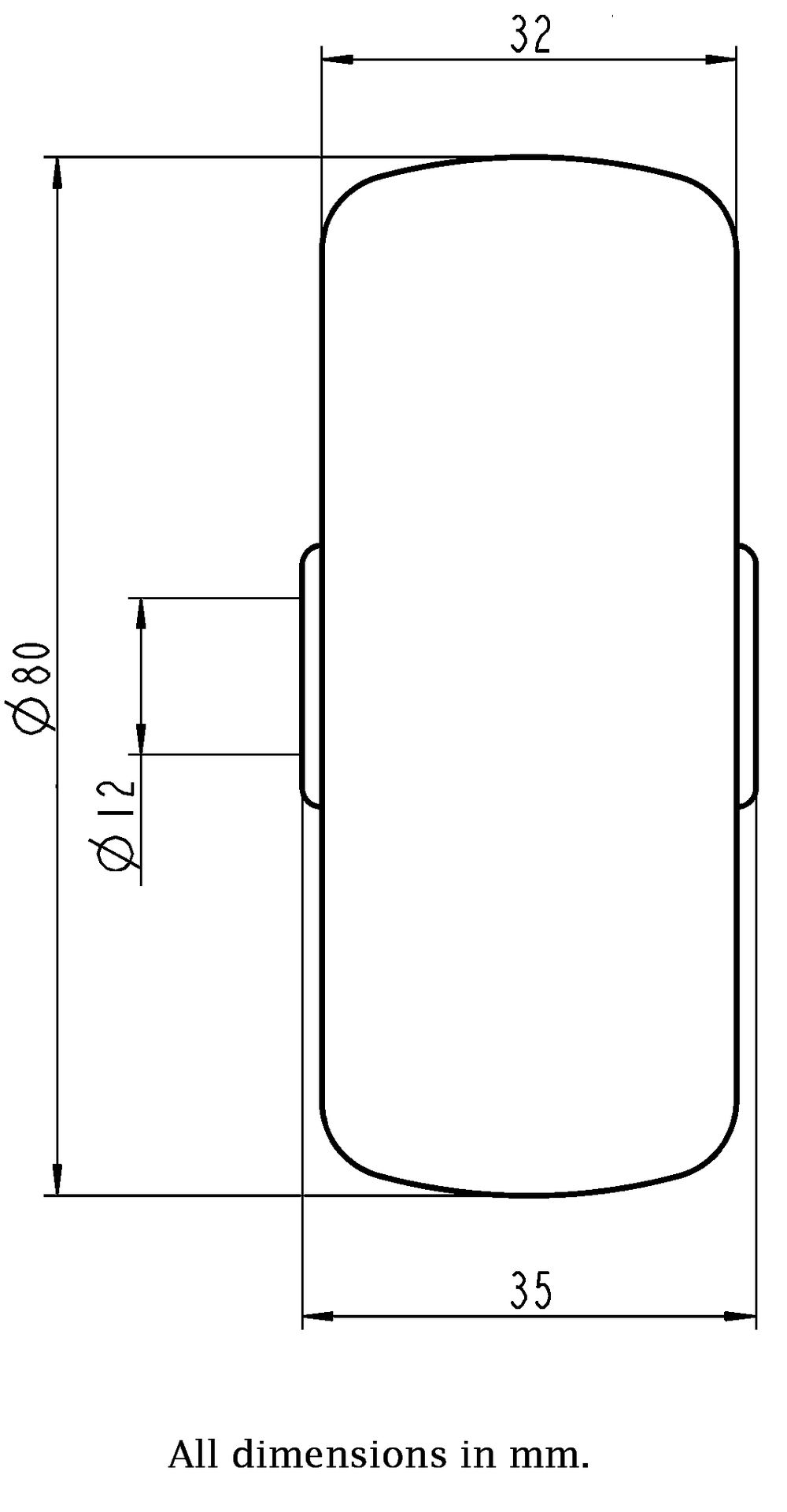 80mm wheel with grey thermoplastic rubber on polypropylene centre