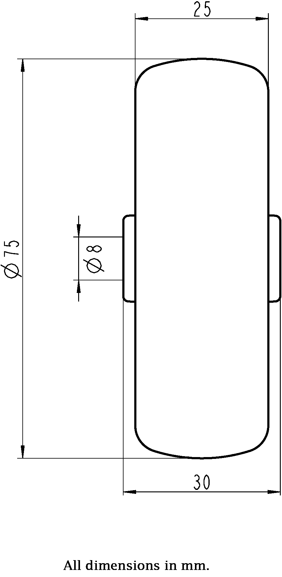 Wheel Size: 75x25mm