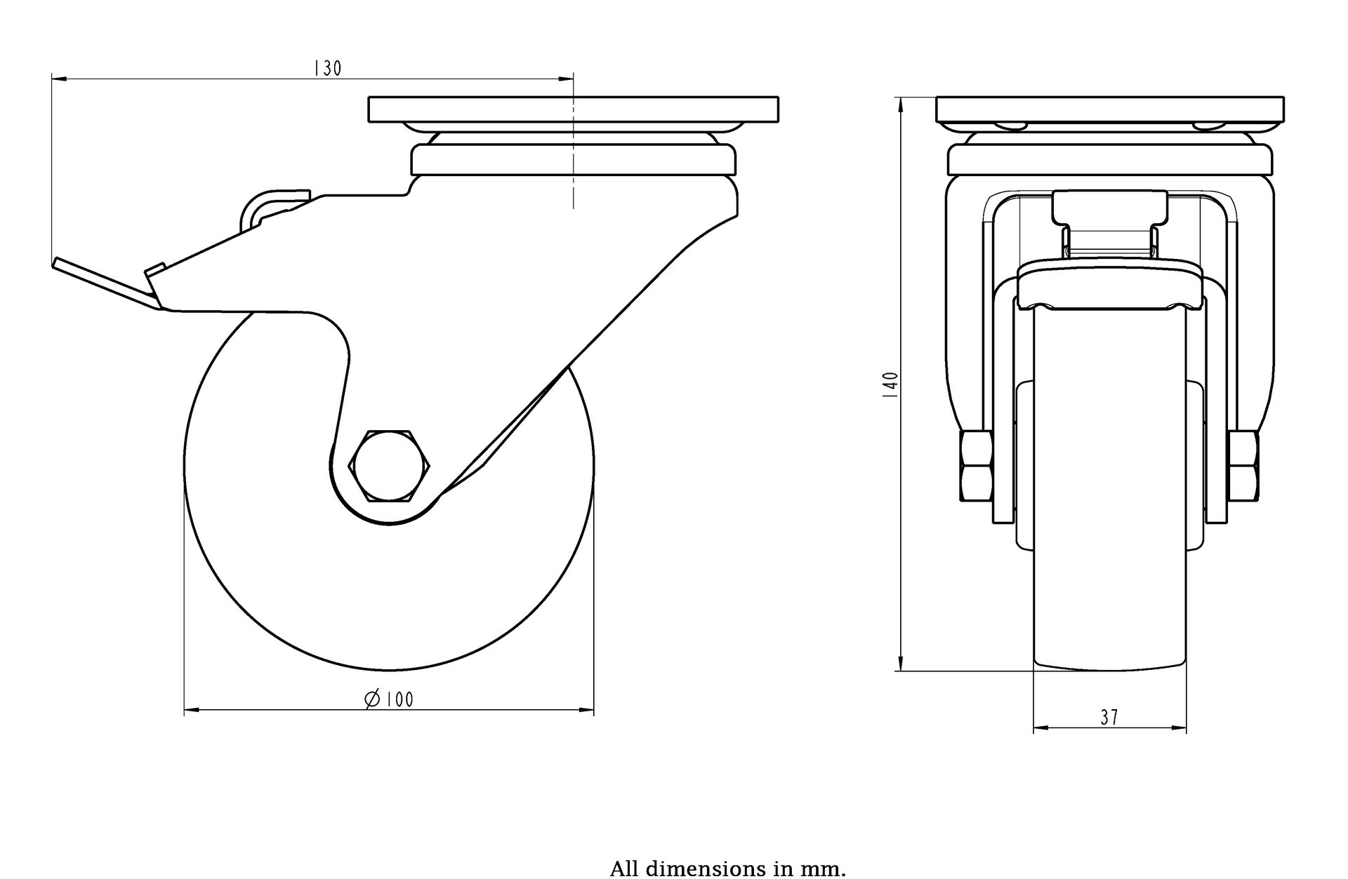Wheel Diameter: 100mm (4" inches)