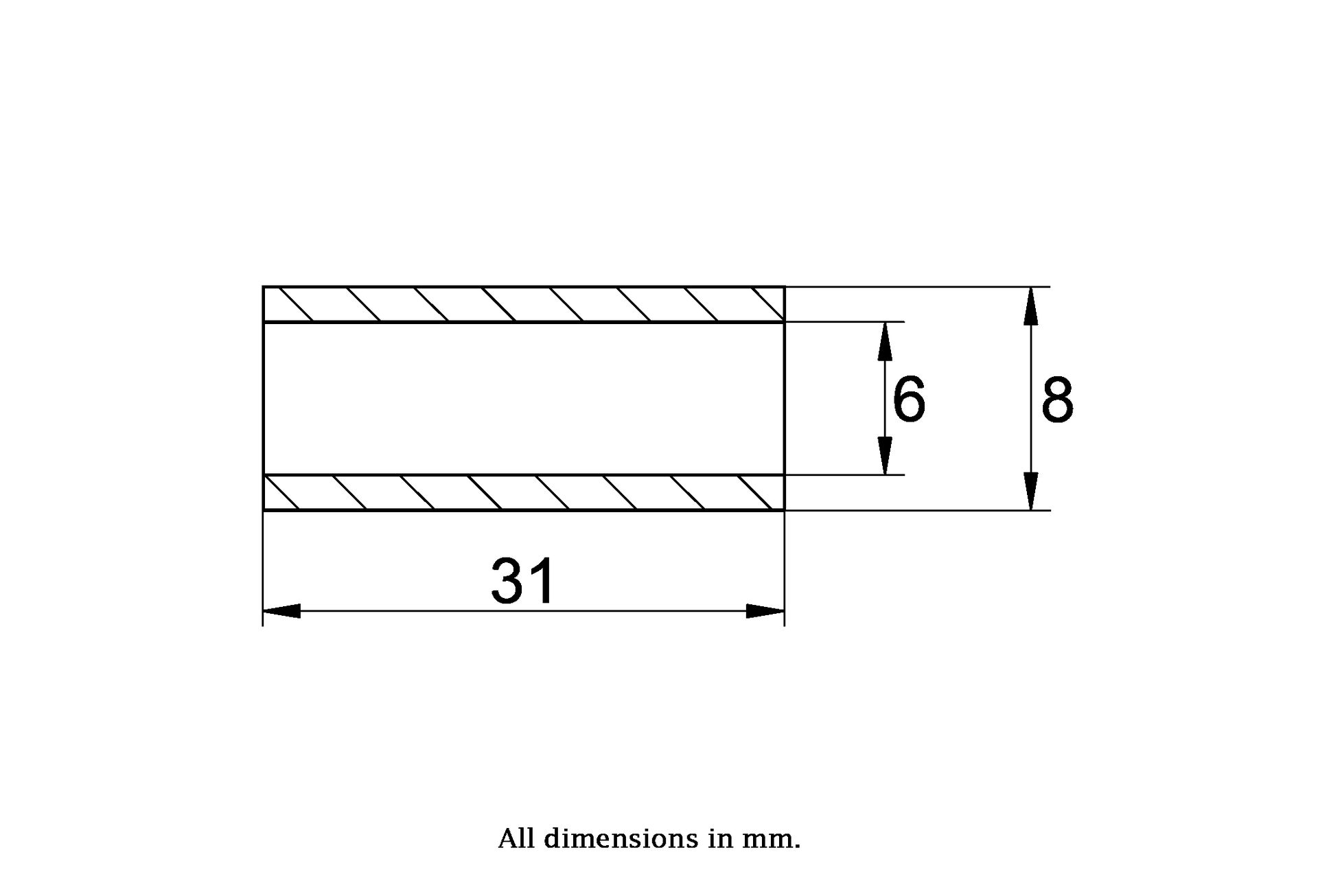 Bush Size: 08x06x31mm (Outside Diameter x Bore x Length)