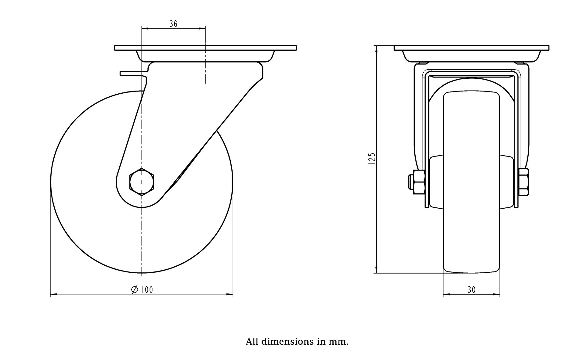100mm heat resistant stainless steel swivel castor with thermoplastic wheel
