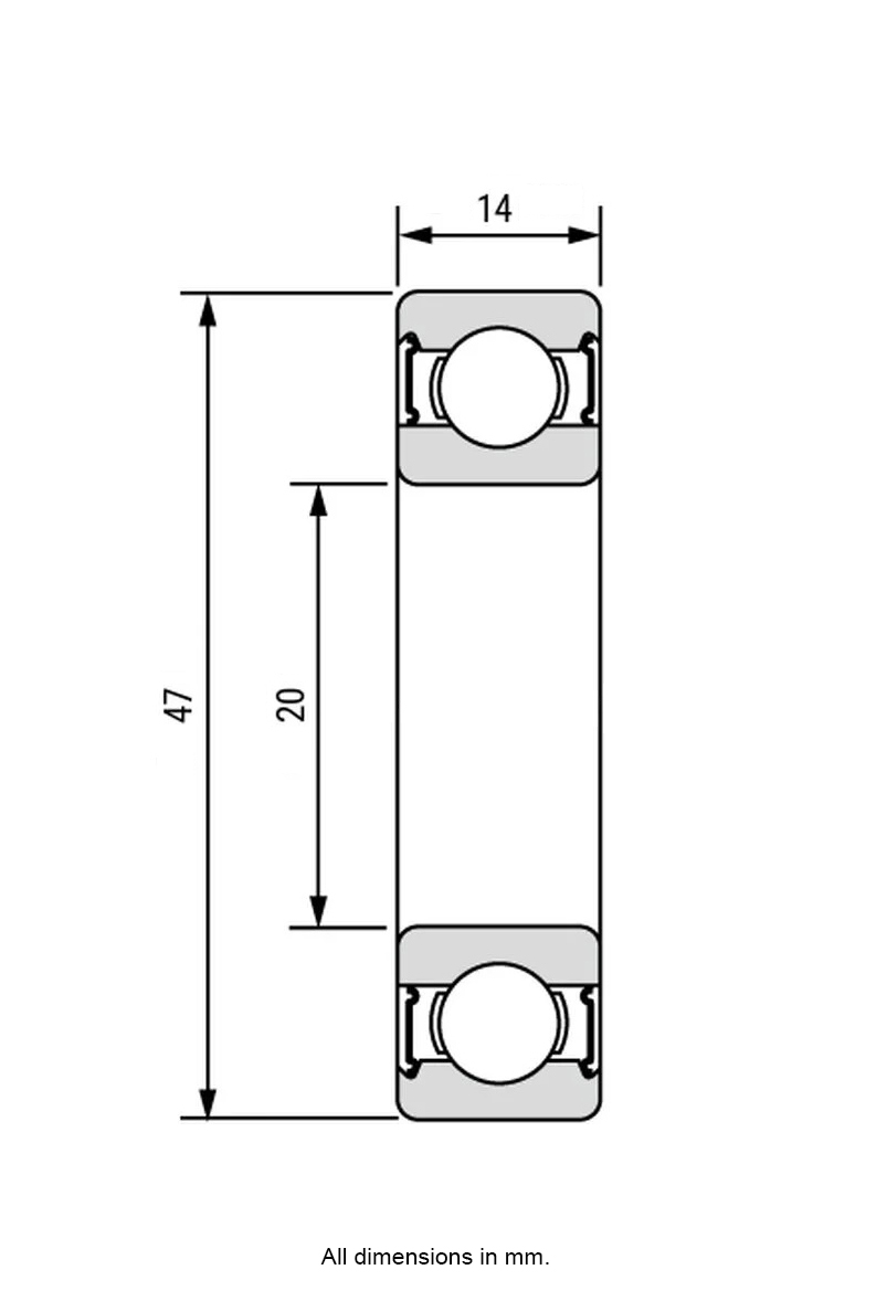 Ball bearing Size: 47x20x14mm (Outside Diameter x Bore x Width)