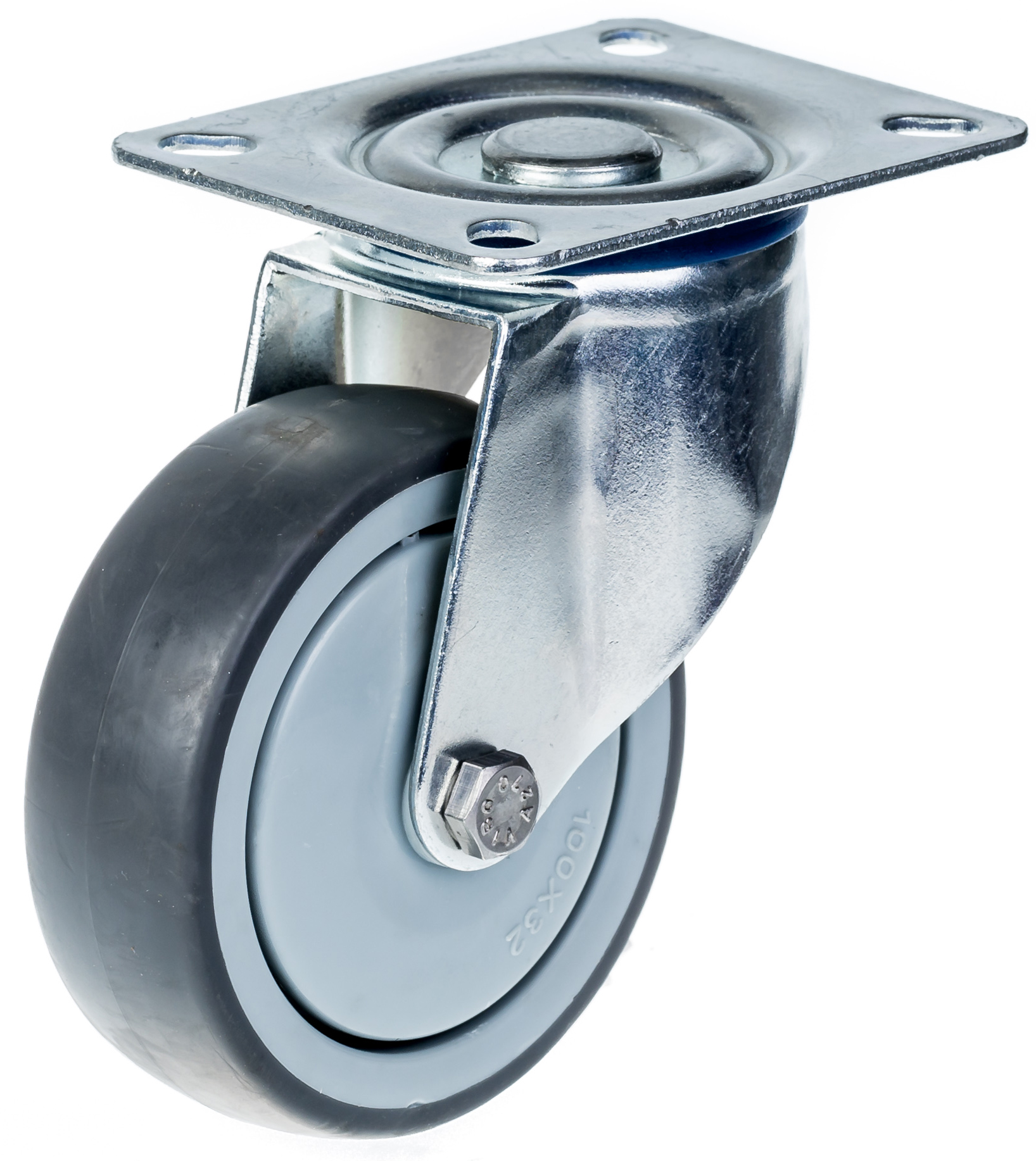100mm swivel castor with grey thermoplastic rubber on polypropylene centre wheel