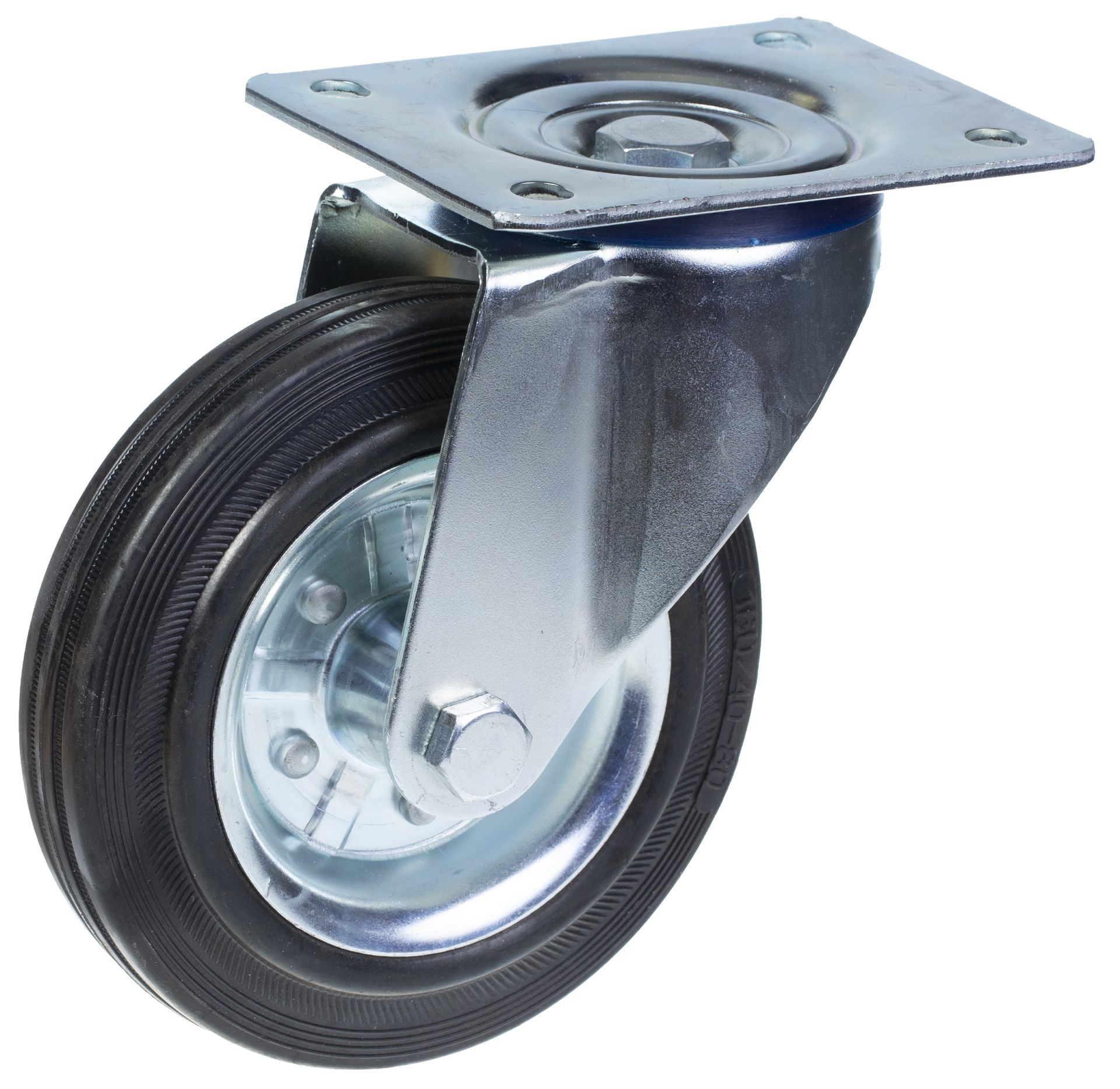 160mm swivel castor with black rubber on pressed steel centre wheel
