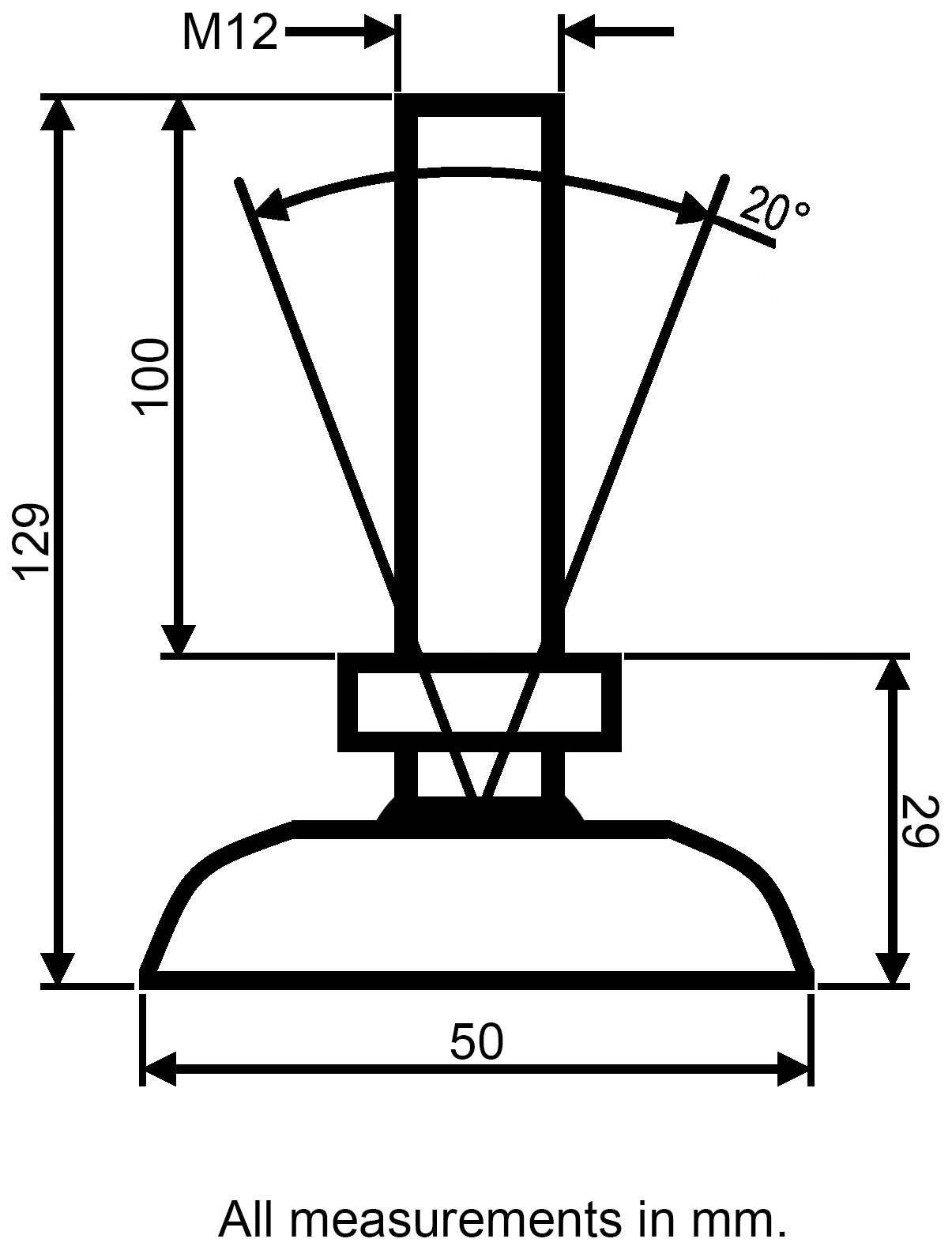 M12x100 Zinc plated tilting levelling foot with 50mm plastic base